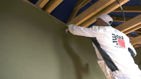 Podívejte se na strojní zpracování interiérové omítky Baumit KlimaMPI