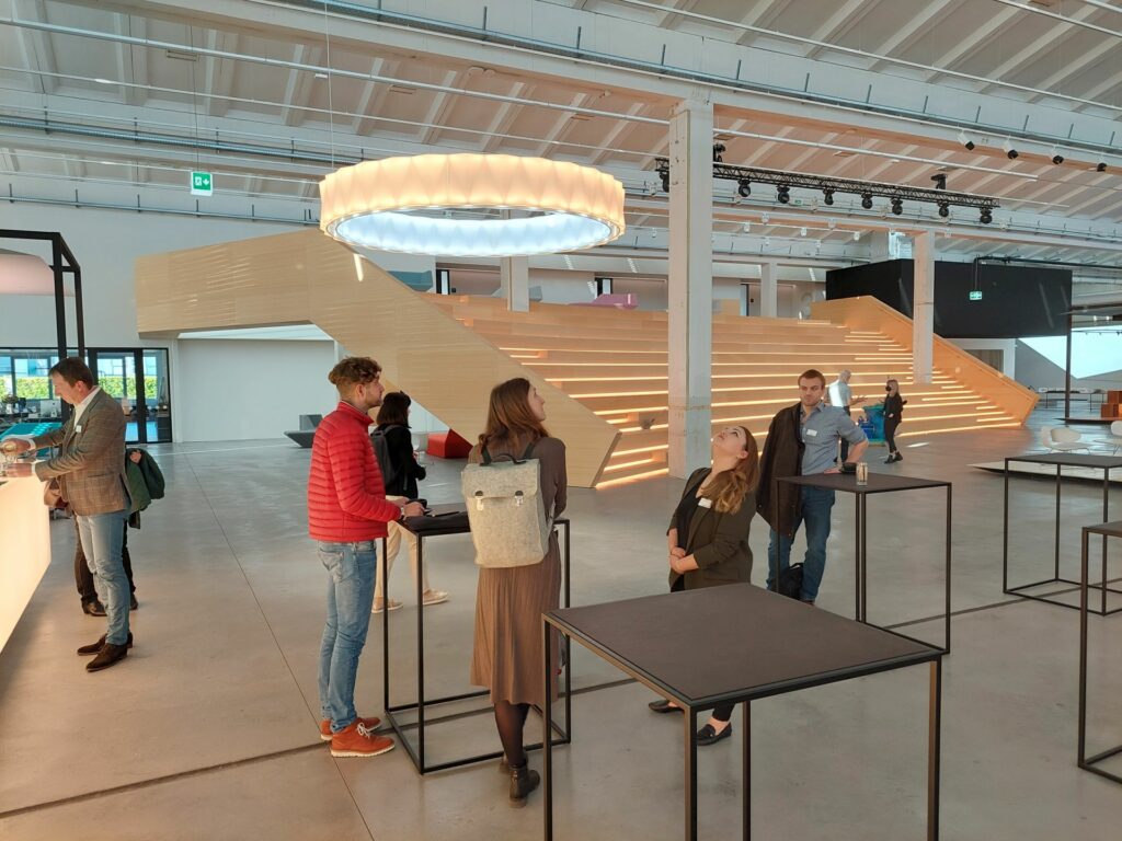 Ústředním prvkem prostorné haly je velkorysé dřevěné schodiště. Dodává prostoru strukturu a zároveň slouží jako atrium a místo pro setkávání, například pro přednášky či diskuze. Osvětlené krychle pomáhají v prezentaci produktů. Návrh staré tovární haly jako místa pro spolutvoření – inspirovaný firemní kulturou studia Snøhetta – umožňuje dynamické využití otevřeného prostoru. Tato flexibilita v používání charakterizuje Light Forum jako místo interakce, které lze přizpůsobit široké škále požadavků a umožňuje vyvíjet nová řešení osvětlení za přítomnosti zákazníka.