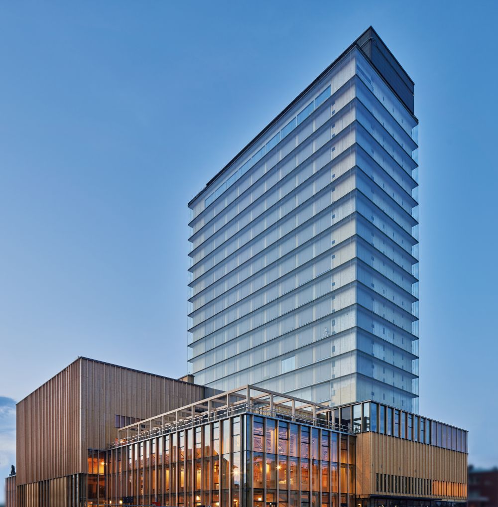 Moderní technologie a konstrukční řešení umožňují tvořit stále impozantnější skleněné fasády, čehož architekti ochotně využívají. Je nutné zohlednit také skutečnost, že díky synergii systémů protislunečních clon, rolet a také optimální expozici a orientaci stavby jsou zaručeny pasivní zisky energie, které tak dále minimalizují uhlíkovou stopu, kterou budova během svého používání zanechává.