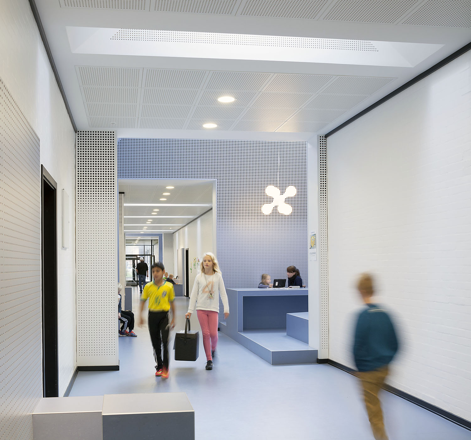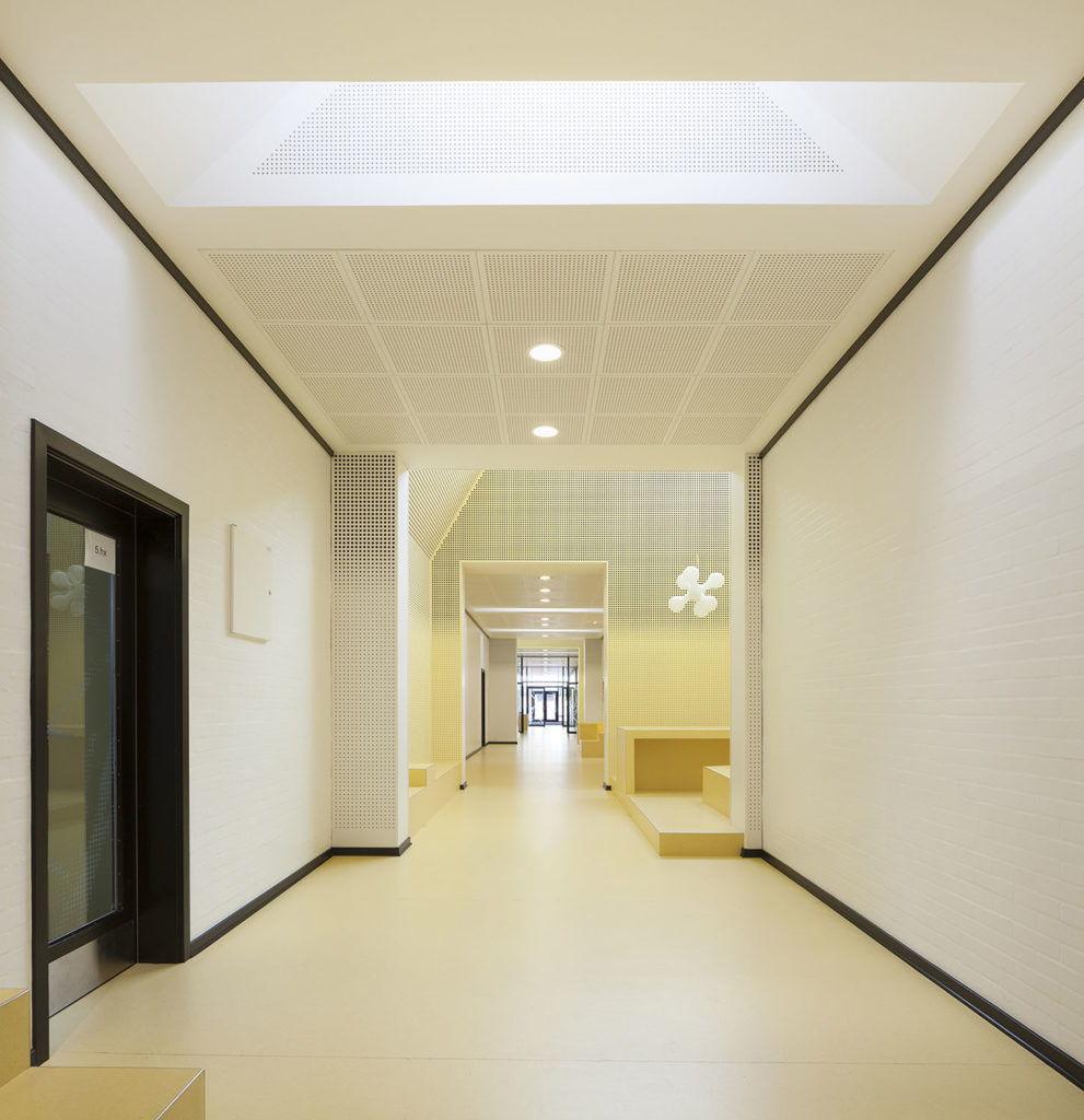 Jedním z cílů rekonstrukce bylo přivést do budovy co nejvíce denního světla a zároveň vytvořit atraktivní prostor, kde děti budou chtít trávit čas a pracovat na svých projektech a scházet se. V chodbách vznikla světlá zákoutí s moderním sezením. Zdánlivě tak nezajímavá část budovy, jako je chodba, předčila svůj potenciál a stala se rázem centrem dění.