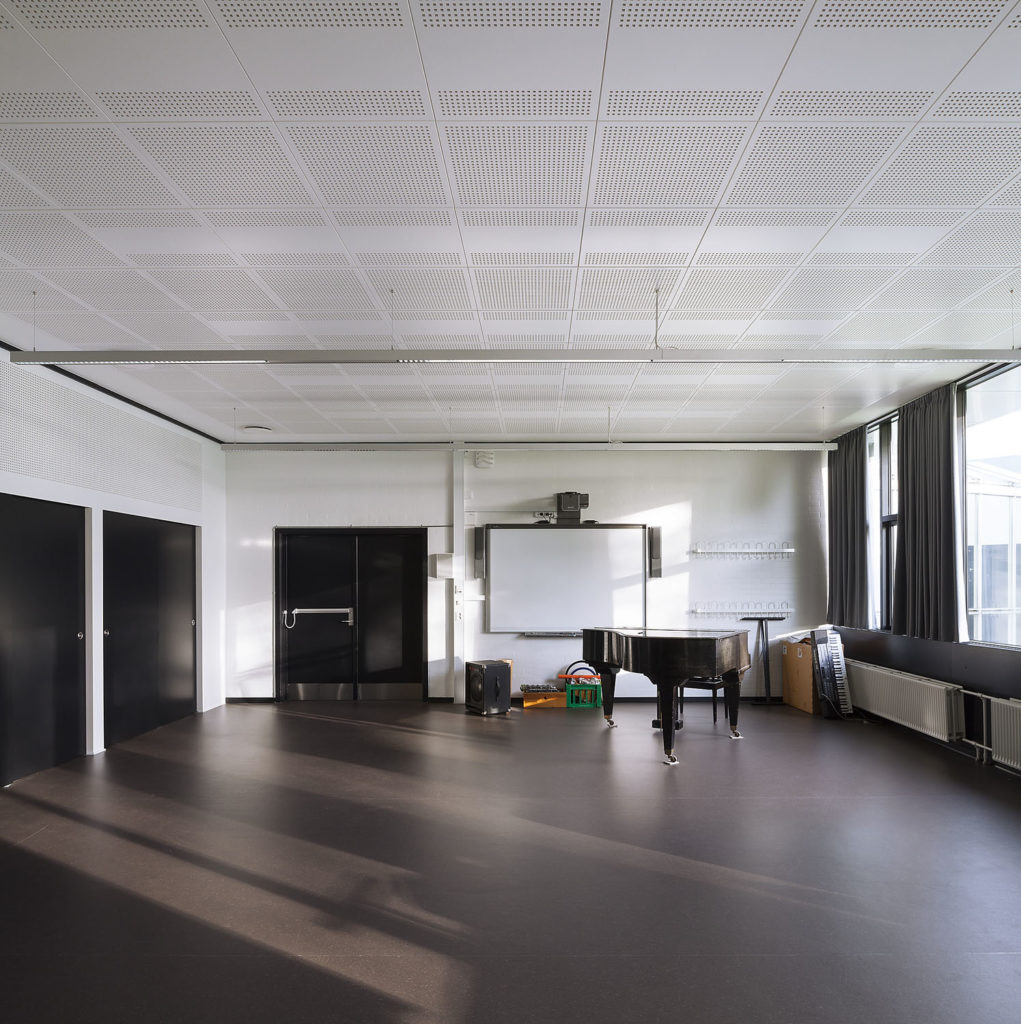 Oba materiály by naplnily zákonné požadavky na dobu dozvuku (0,4 s). Z pohledu celkových nákladů vycházel však sádrokarton lépe. Jeho povrch je pevnější, a tudíž nevyžaduje tak náročnou údržbu. Esteticky navíc vytváří i zajímavější a hravější prostor, což je důležitý aspekt nejen ve vzdělávacím zařízení. Použití perforovaných sádrokartonových desek Gyptone BIG Quattro 41 Activ’Air zároveň zachovalo původní ráz kazetových systémů, jelikož jeho perforace je čtvercového tvaru.