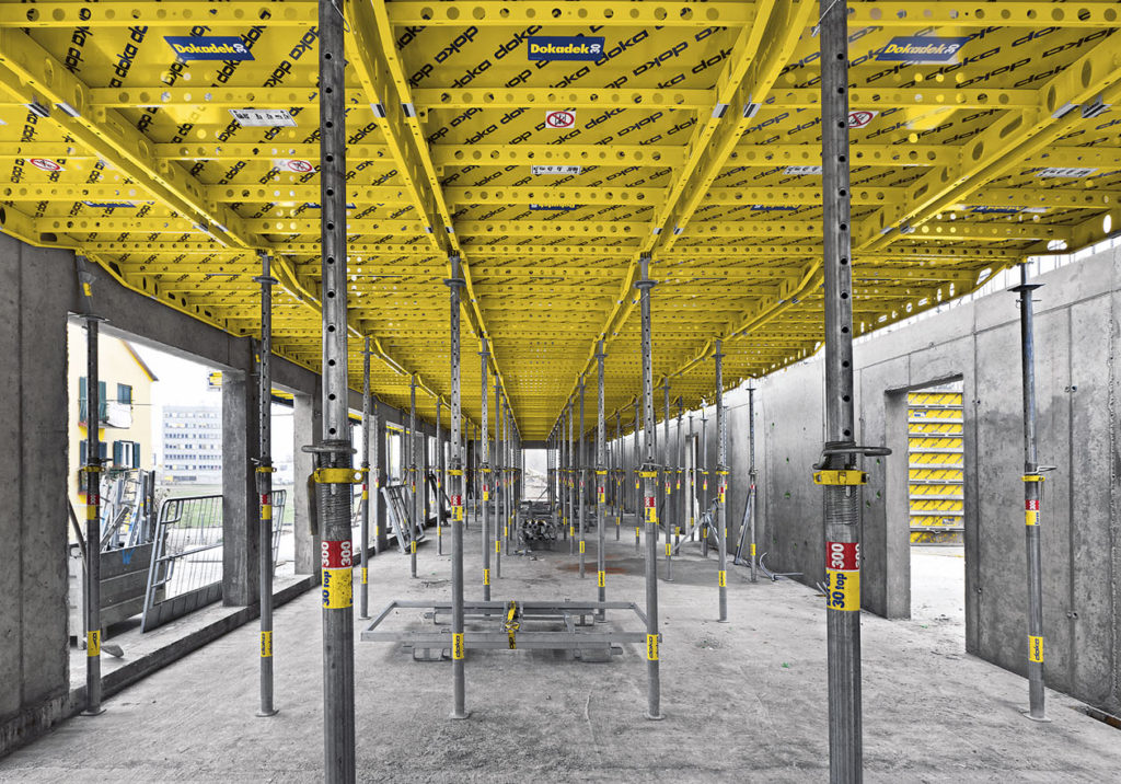 Zaklínadlem dnešní doby bezesporu je rychlost výstavby. S nasazením moderních bednicích systémů, jako je například prvkové stropní bednění Dokadek, které je montováno odspodu, nebo stěnové bednění Framax Xlife plus s použitím jednostranných kotev, tak stavebníci výrazně šetří čas. Manipulace s bedněním je navíc snadná, přesná a bezpečná. Systémové prvky lze dodatečně využít i jako estetický nosič, kdy rámy otisknuté do betonu přinášejí výrazný geometricky uspořádaný spárořez.