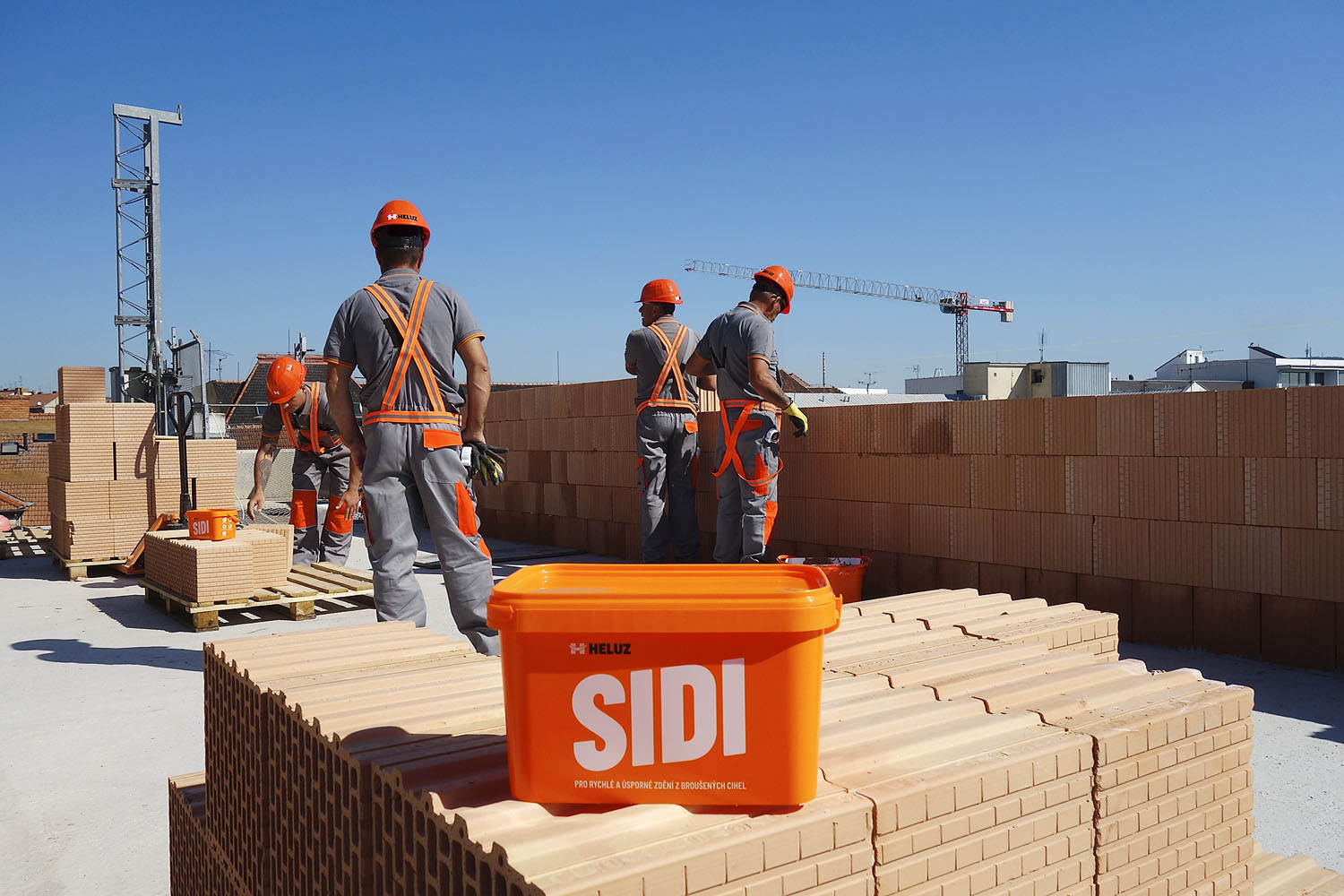 Nová technologie zdění stavbu zásadně zjednodušuje a uspíší ji v řádu dní až týdnů – nejen samotnou chytrou aplikací bez potřeby zednické lžíce či nanášecích válců, ale i tím, že plnohodnotné zpevnění spoje nastává do týdne. To je 4x kratší doba než u běžně používaných malt. Před aplikací malty HELUZ SIDI stačí směs lehce promíchat, např. pomocí dřevěné laťky, není potřeba žádné elektrické míchadlo, proto na stavbu nemusíte mít přivedenu ani elektřinu, ani vodu jako dřív.