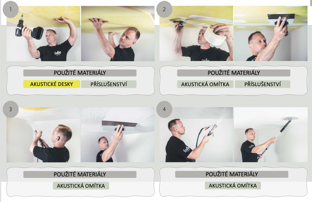 Oproti konkurenci má bezespárový systém Fade®nadstandardní akustické vlastnosti, a to i díky své struktuře s velmi otevřenými póry. Jeho výjimečnou absorpci hluku podporují také anorganické materiály a perlit v patentované receptuře. Bezespárová omítka Fade®má vlastnosti podhledu klasifikovaného do absorpční třídy A.