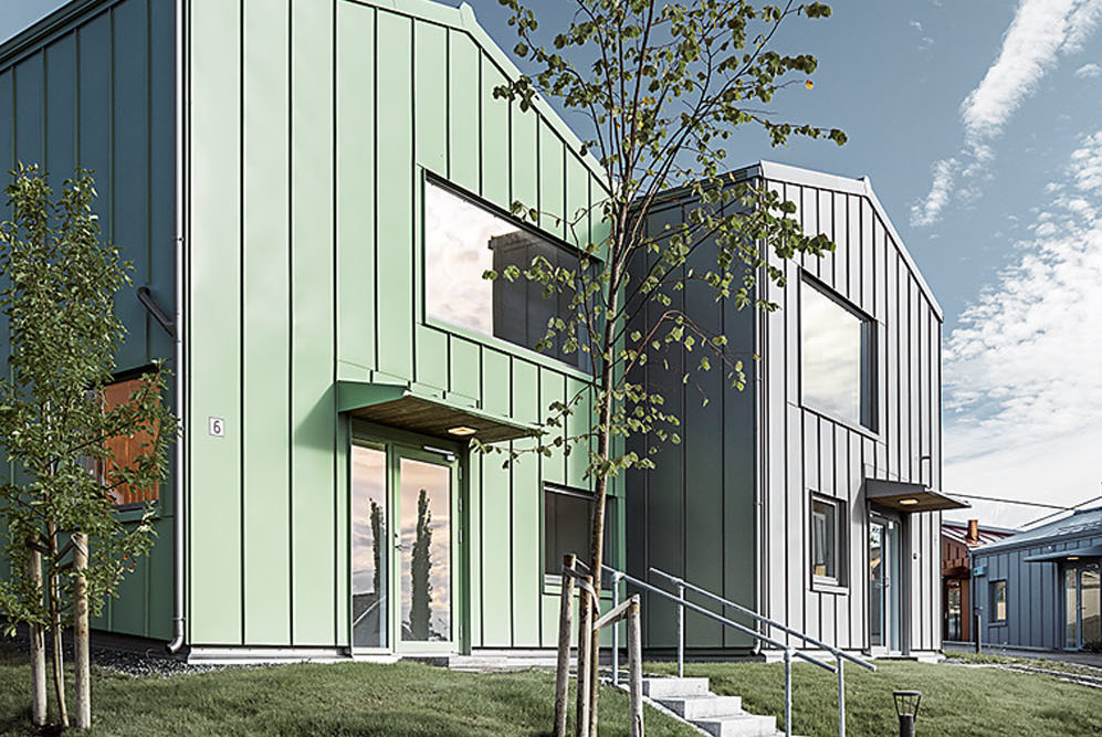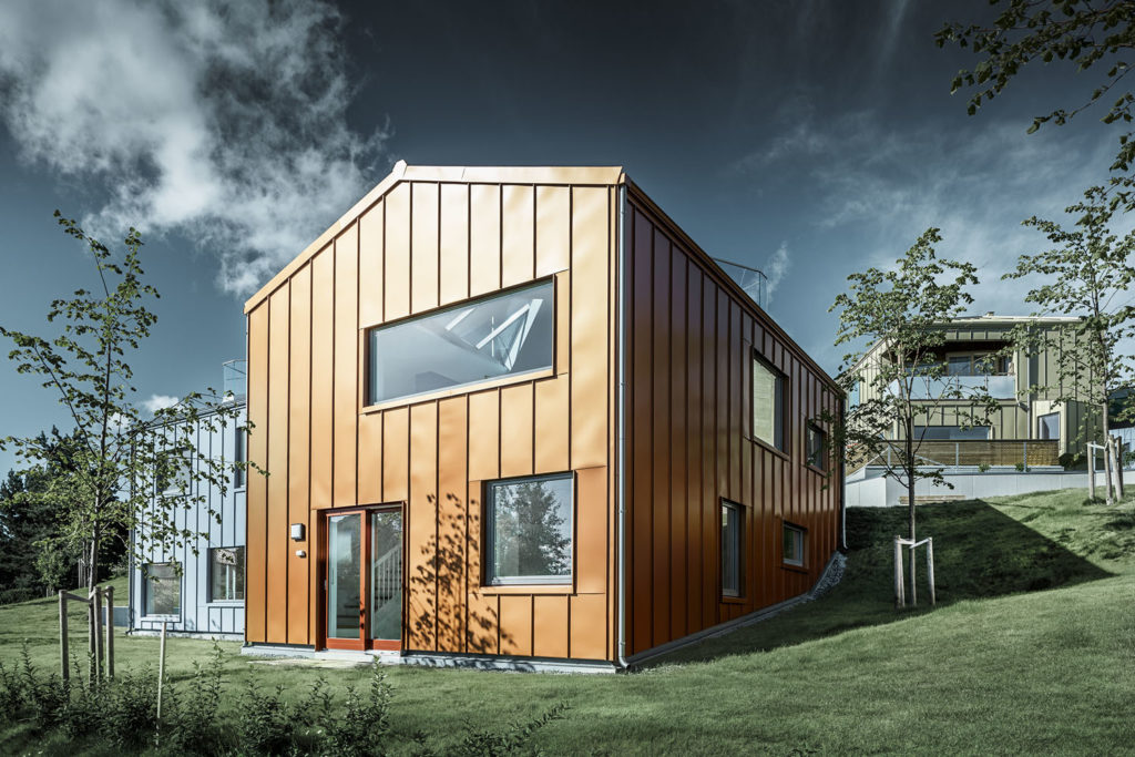 Využitá falcovaná krytina Prefalz byla jasnou variantou. Splňuje vše, co bylo při stavbě potřeba. V Norsku šlo o první velkou realizaci stavby s výrobky PREFA. Šéf pokrývačů Dag-Arne Gundersen se práce zhostil skvěle. Se svými zaměstnanci se věnoval fasádám a střechám třiadvaceti domů během celého roku. Jak ale vzpomíná, práce to byla občas nelehká.
