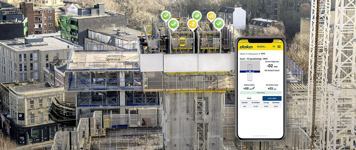 Dle exaktně naměřených dat je pak možné vyrovnat bednicí celky s přesností na dva milimetry. Systém přispívá k rychlému a efektivnímu obednění náročných výškových projektů a díky naměřeným datům je zároveň i důležitým krokem k inteligentnímu staveništi.
