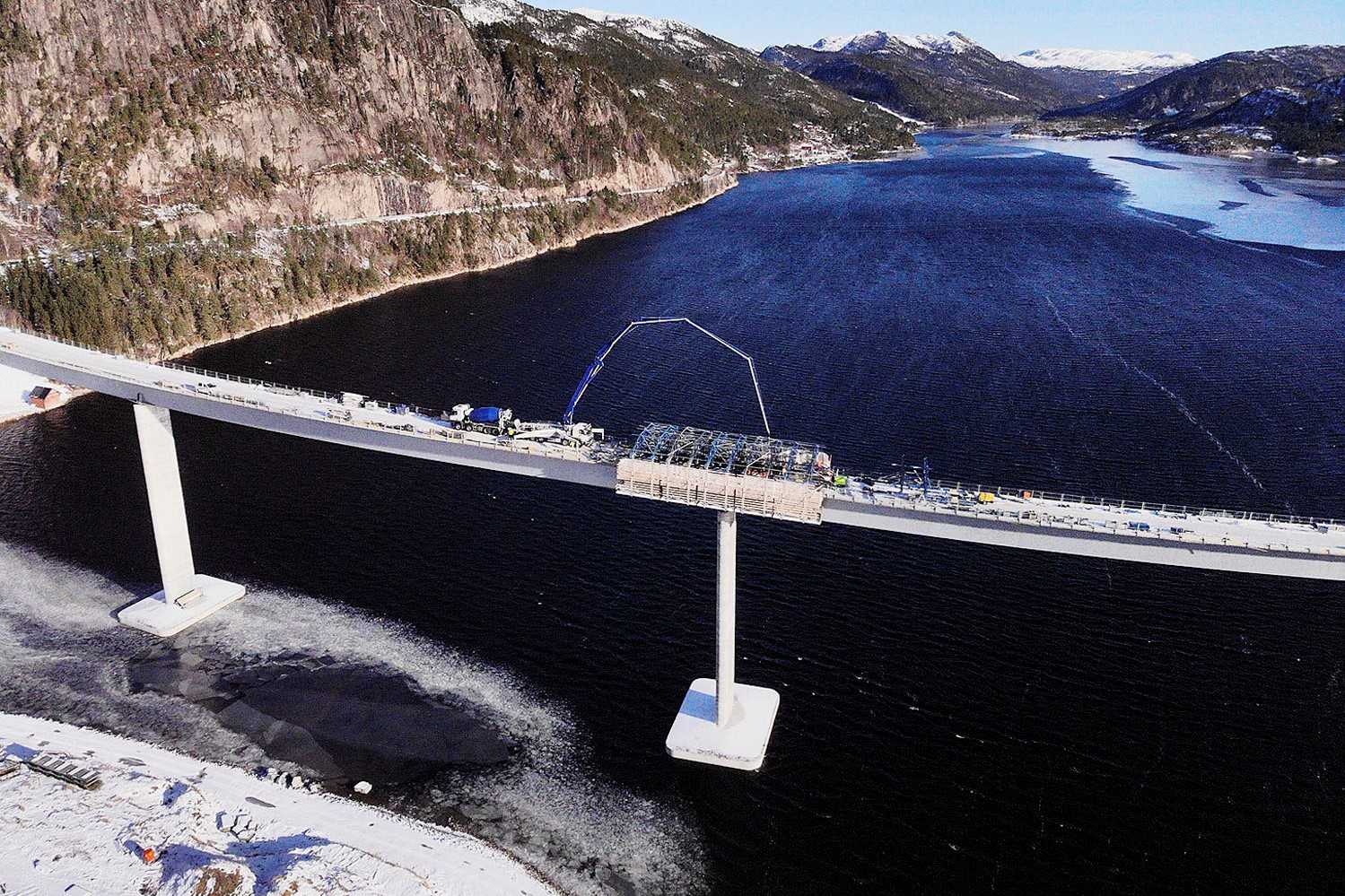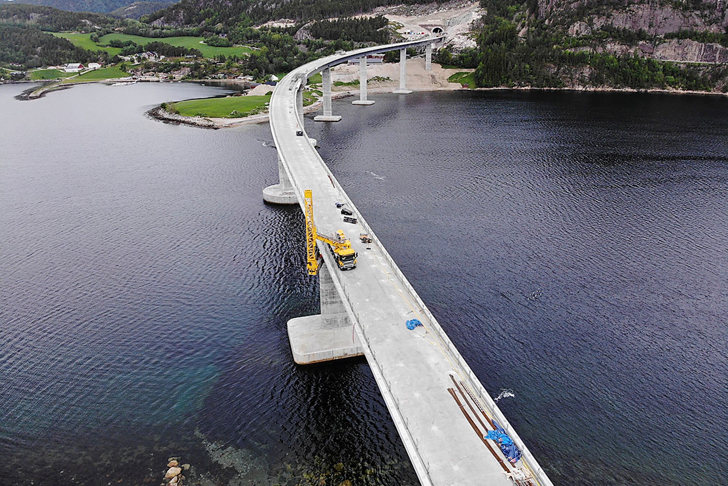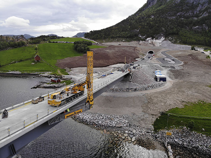Metrostav budoval tunely Slordal (2650 m) a Mjones (770 m), nejambicióznější součástí silničního úseku je konstrukce 735 m dlouhého osmipolového mostu přes Astfjord, která zahrnovala unikátní založení pomocí železobetonových studní o průměru 18,4 m a váze 2200 tun na mořském dně.