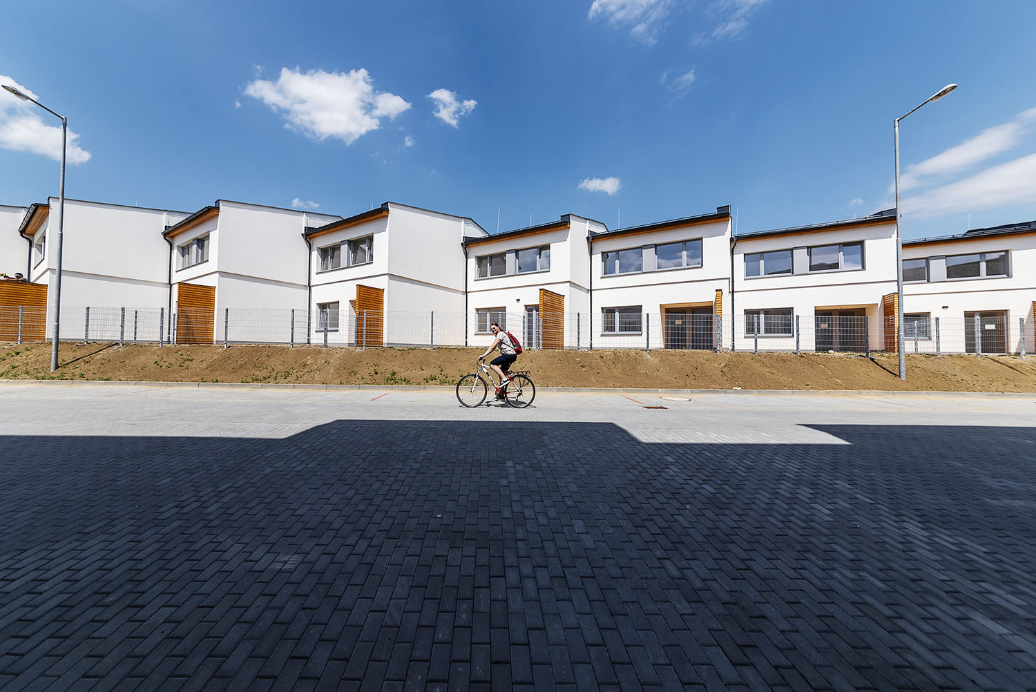 V severovýchodní části projektu je situován ještě soubor 12 řadových domů s předzahrádkami, rovněž vyzděných z cihel HELUZ. Součástí projektu je i realizace víceúčelového exteriérového sportoviště jako připomenutí původního využití místa, které bylo zasvěcené fotbalu.
