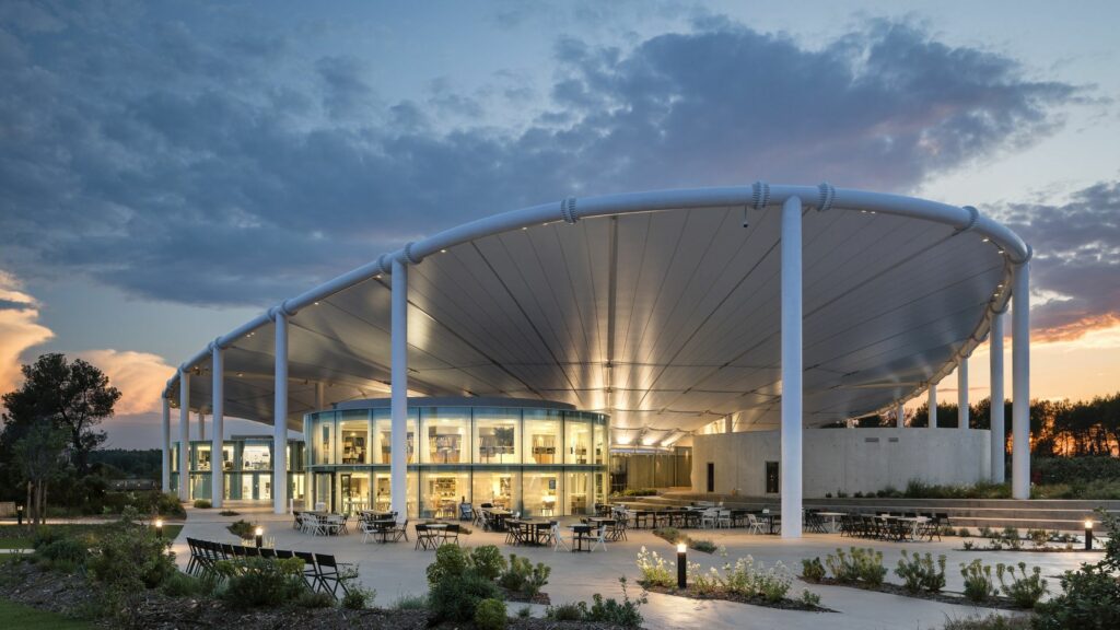 The camp se rozkládá na ploše 33 500 metrů čtverečních, a kromě výzkumných prostor, kanceláří a experimentálních laboratoří ho tvoří také 150 ubytovacích jednotek, restaurace, bar a amfiteátr. Celý komplex stojí na okraji města Aix-en-Provence v malebné krajině plné borovicových lesů. Umístění „thecampu” i architektonické řešení jeho rozlehlé plochy vychází z pomyslného trojúhelníku tvořeného třemi hlavními identifikačními znaky lokality: lesem na severu, horou Sainte Victoire na východě a skalnatým vrcholem na západě.