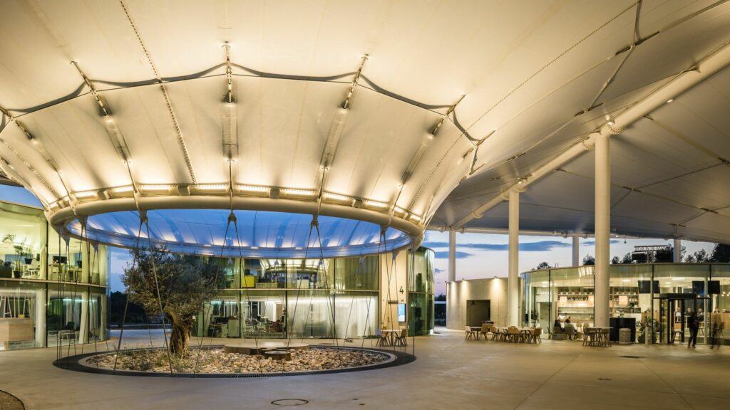 Kampus je složený z oddělených skleněných inkubátorů, které zakrývá velká střešní konstrukce. Na inkubátory bylo použito pokovené sklo s třemi vrstvami povlaku Guardian SunGuard® eXtra Selective, které nabízí ideální poměr mezi světelnou propustností světla a solárním faktorem a vynikající tepelné vlastnosti. Přirozené denní světlo je využito na maximum a odráží optimální množství slunečního tepla od skla, což přispívá k udržení příjemného pocitu uvnitř.