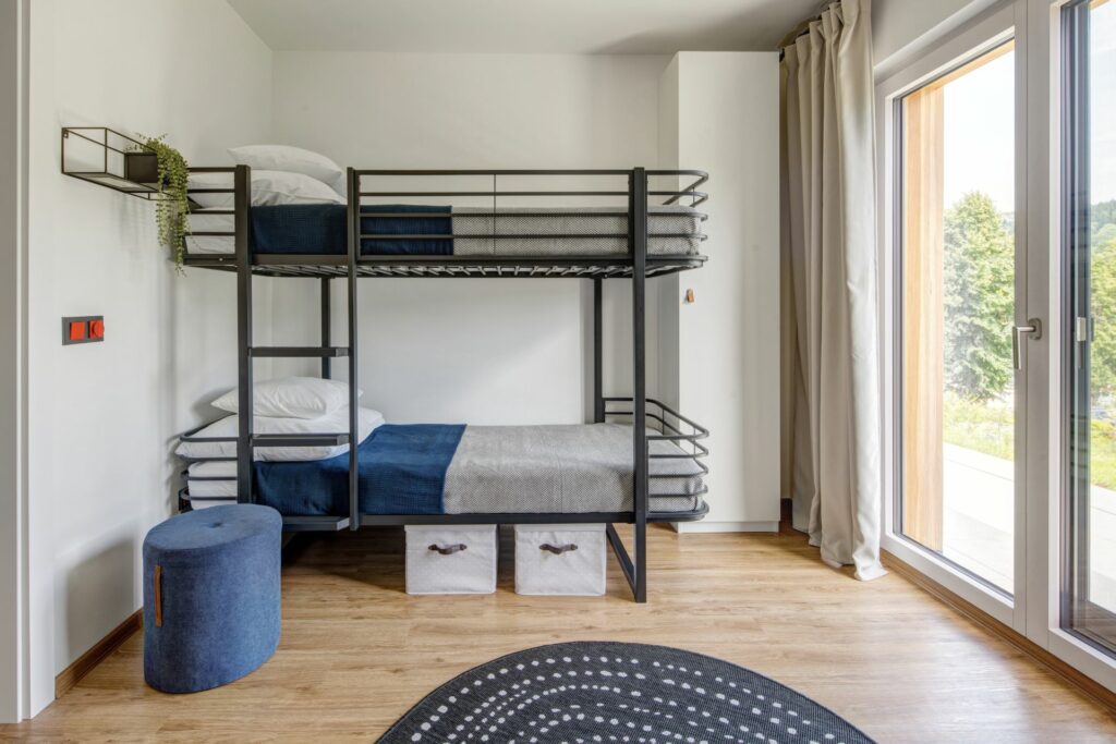 „Dřevohliníková okna kombinují základ v podobě vícevrstvého dřevěného hranolu, který z vnitřní strany zůstává přiznaný, s vnějším hliníkovým opláštěním. Díky tomu se prvky vyznačují skvělými tepelně izolačními vlastnostmi, které splňují i přísné požadavky nízkoenergetických a pasivních staveb. Hliník je chrání před povětrnostními vlivy a zajišťuje jim dlouhou životnost a zároveň minimální nároky na údržbu. Právě pro tuto kombinaci užitných vlastností a minimalistického vzhledu jsou dřevohliníková okna hojně oblíbená architekty,“ říká Ing. Milena Tomčíková, produktová manažerka značky VEKRA. Okna jsou navíc doplněná o sítě proti hmyzu, takže si obyvatelé mohou užívat čerstvý horský vzduch bez obav z nezvaných návštěvníků z okolité přírody.