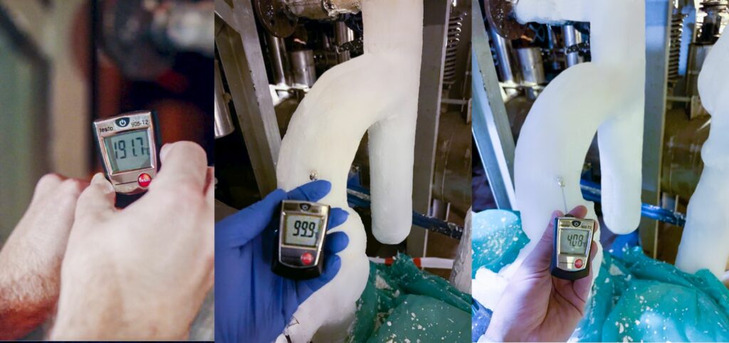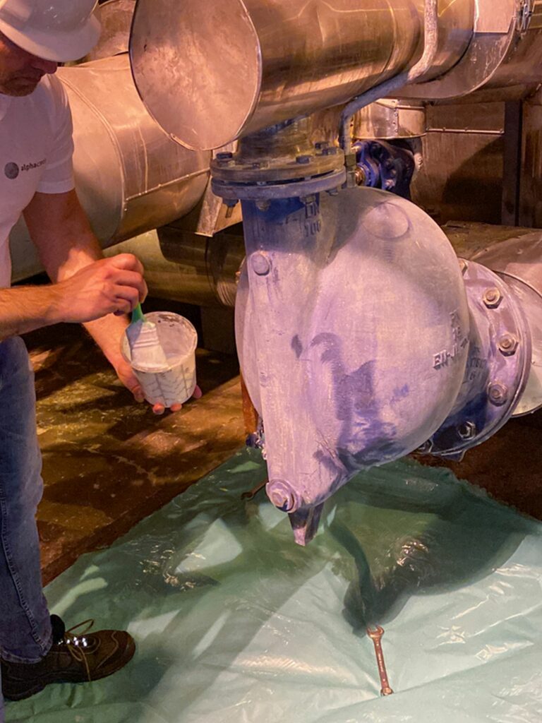 Oproti užívání běžných izolačních materiálů je jednou z hlavních výhod této moderní technologie fakt, že k aplikaci na potrubí o teplotě do +220˚C není nutné zastavovat provoz. Při dodržení všech podmínek bezpečnosti práce lze tedy i takto horké povrchy natřít v době, kdy jimi proudí horké médium, a to obyčejným štětcem nebo airless zařízením. V takovém případě stačí potrubí jen očistit, popřípadě odmastit. Aby nátěrová hmota pracovala opravdu tak, jak má, je třeba při aplikaci také dodržet správný postup. Nejprve se na povrch nanáší první, takzvaně adhezní nátěr, který vytvoří bílý, matný film. A už tato vrstva dokáže snížit teplotu povrchu o +15˚C až +20°C. „Následně je ale třeba nechat nátěrovou hmotu vyschnout a teprve poté aplikovat další vrstvy vždy v postupně se prodlužujících časových rozestupech. Ty jsou nesmírně důležité, ať už k aplikaci dochází na horký povrch za provozu, či při odstávce,“ říká Peter Vavrda, jednatel společnosti ALPHA Czech, která se zabývá vývojem reflexně izolačních nátěrů. Časové rozestupy je nutné dodržet proto, že jak se při aplikaci za provozu s každou nanesenou vrstvou snižuje teplota povrchu, prodlužuje se i její vysychací čas. „V případě aplikace za studena pak potřebuje každá vrstva na vyschnutí stejný časový úsek, a to 12 hodin,“ dodává.