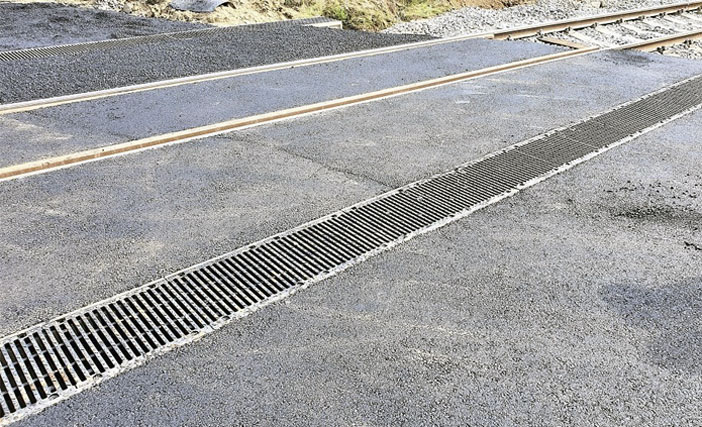 Železniční přejezdy odvodňovány polymerbetonovými žlaby
