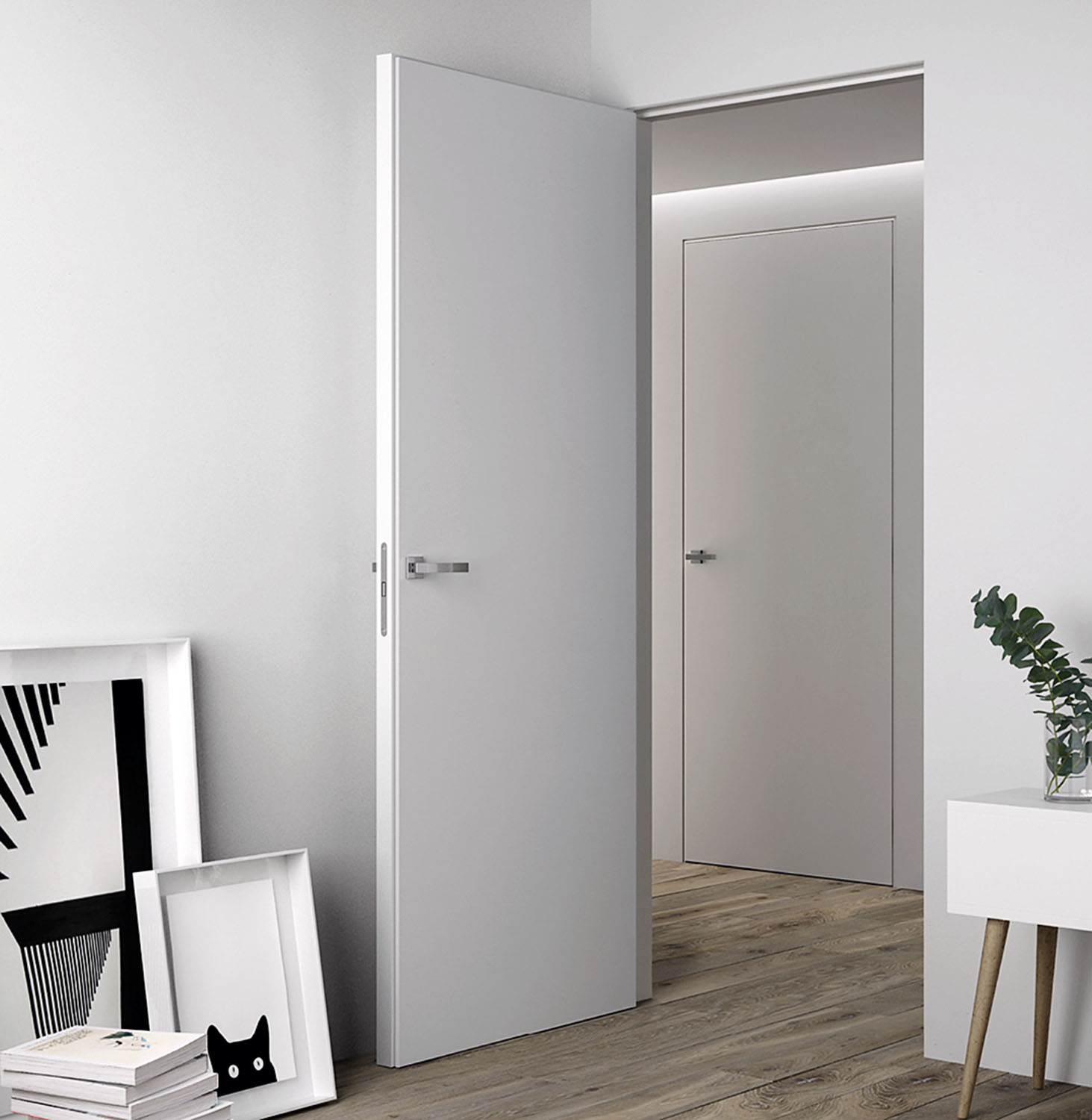 Křídlo Battente Cinquanta dodá klasickým křídlovým dveřím současný moderní vzhled tím, že kamufluje jejich tvar plynulým přechodem mezi dveřmi a okolní stěnou. Systém bez obložkové zárubně se stěnou splývá a čisté, esenciální linie mu dodávají stále aktuální minimalistický vzhled.
