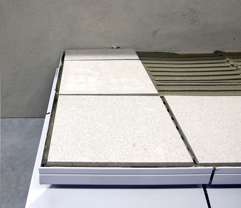 Základním lepidlem pro kladení formátů do velikosti 40 x 40 cm na podlahách jak v interiérech, tak i na balkonech a terasách, je cementové lepidlo pro kladení do fluidního lože PCI Pericol® Fluid.