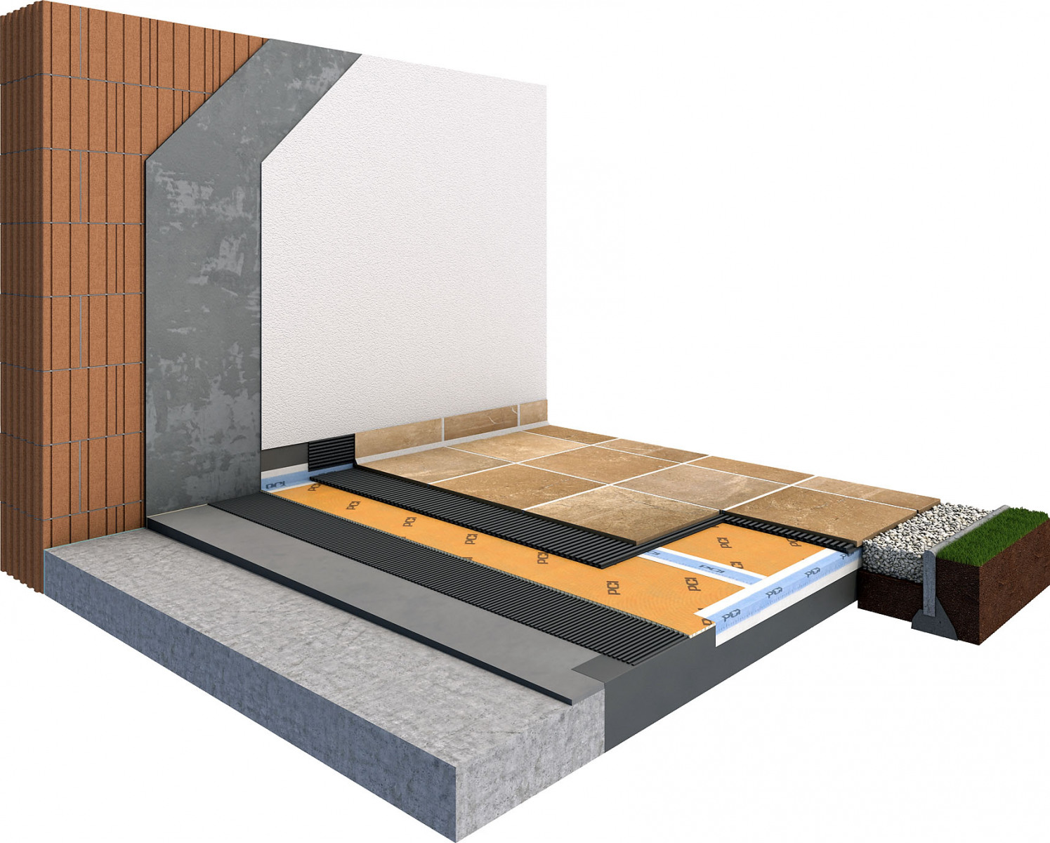 Základem systému je hydroizolační stěrka PCI Seccoral® 2K Rapid, popřípadě difuzní izolační pás PCI Pecilastic® U. Oba tyto produkty jsou flexibilní a dokážou eliminovat smykové tření, ke kterému dochází vlivem teplotních změn.