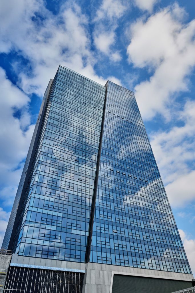 Skleněná fasáda výškové budovy o rozloze 19 000 m² je strukturována různobarevnými skleněnými poli. Architekti si od výrobce přáli technicky kvalitní sklo ve dvou různých odstínech – a s co nejvíc shodnými hodnotami propustnosti světla a tepelné izolace. Zákazník, společnost HB Reavis, rovněž kladl na materiál vysoké požadavky: Minimálně 60procentní propustnost světla a maximální vnější odrazivost 13 až 26 procent. „Obojí pro nás představovalo velkou výzvu,“ vzpomíná Pavel Nečas, vedoucí projektu ve společnosti Saint-Gobain Building Glass.