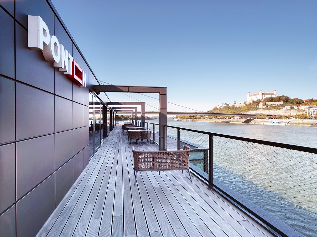 „Hlavní sál nabídne taneční parket, pódium, otáčivou plošinu pro prezentaci např. nových modelů automobilek, velkoformátovou LED obrazovku a samozřejmě profesionální ozvučení a osvětlení. V horním patře nad sálem je restaurace s kapacitou 150 míst a výjimečným výhledem na hlavní bratislavské nábřeží s dominantou Bratislavského hradu v pozadí,“ upřesňuje Dušan Novák – majitel pontonu.