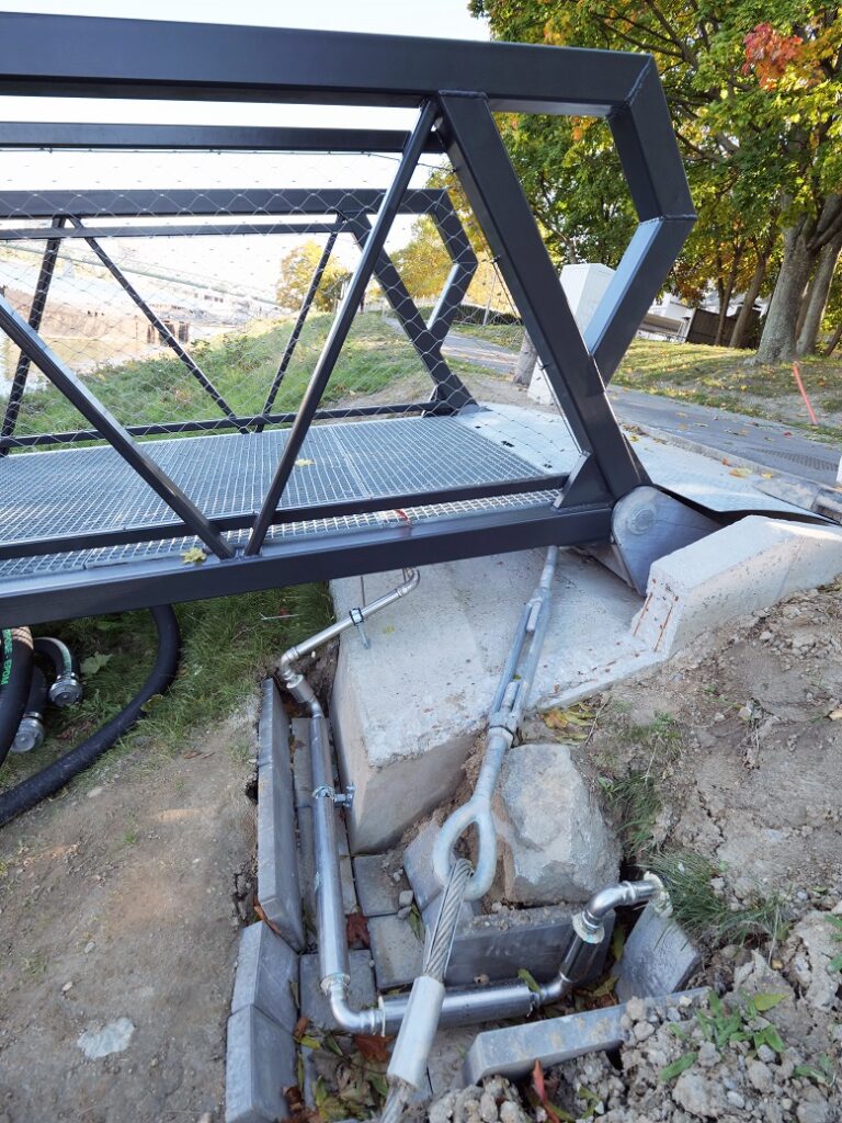 Takto prostorná a zcela samostatně fungující jednotka musí být i vzhledem ke své povaze napojena na veškeré inženýrské sítě. Z pohledu objektu permanentně plovoucího na vodě napojení nebylo až tak snadné. Hlavní spojení se břehem zajišťují dvě lávky, které jsou pohyblivé a na výšce hladiny Dunaje zcela nezávislé. Odolají i velmi vysokým povodním a pod jejich pochozí plochou jsou viditelně vedeny všechny připojovací sítě od elektro, vody, odpadu až po plyn, a to s flexibilním napojením jak na ponton, tak na břeh. Jedna z lávek je konstruovaná tak, aby nosností vyhověla i možnosti vjezdu vozidel přímo do hlavního sálu Pontoonu.
