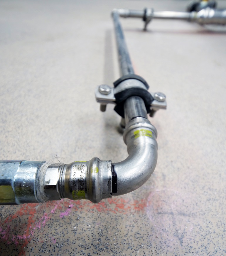 Stejný systém (s použitím stejného nářadí) byl použit jak pro rozvody plynu, tak pro rozvody tlakové odpadní vody. Lisování kromě časové úspory a bezpečnostního aspektu, kdy není vyžadován žádný zdroj tepla a řemeslník není vystaven zplodinám či chemikáliím jako u svařování, nabízí také kvalitativní přidanou hodnotu. Lisovací spojky Viega jsou spojovány tzv. dvojitým lisováním a disponují funkcí umožňující spolehlivé odhalení neslisovaných spojů přímo na místě instalace před samotným zprovozněním instalace. Tím se zabraňuje nákladným opravám po dokončení projektu. Osvědčená technologie Viega SC-Contur totiž zřetelně upozorní na omylem neslisované spoje během tlakové zkoušky.