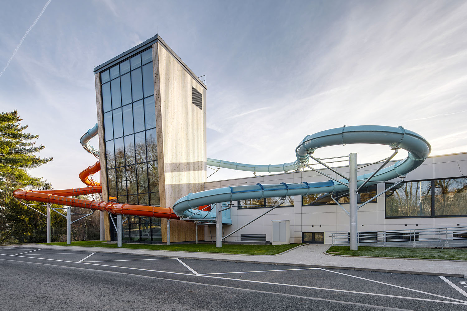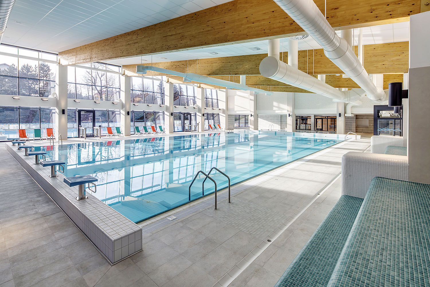 Přelivové hrany plaveckého vnitřního i venkovního bazénu tvoří tvarovky Zürich s protiskluzností C a přelivové hrany dětského a výukového bazénu nižší tvarovky Finland, opět s nejvyšším stupněm protiskluznosti. Keramické výrobky pro bazény jsou doménou značky RAKO.