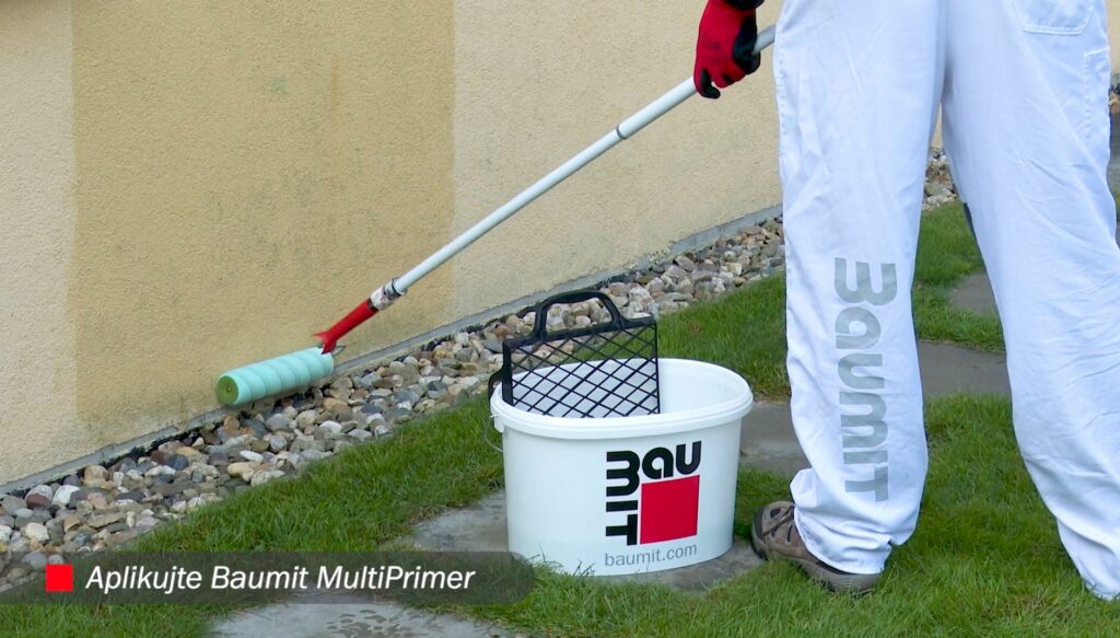 Prasklinami poškozená fasáda se nejprve obnoví použitím univerzálního základního nátěru se zpevňujícími vlákny s označením Baumit FillPrimer, sloužícího jako vhodná penetrace. Po jeho zaschnutí (24 hodin) je povrch připraven na dvě vrstvy výrobcem doporučené silikonové fasádní barvy Baumit StarColor. U drobných trhlin však existuje i druhé řešení v podobě nanesení penetračního nátěru Baumit MultiPrimer a následné aplikace dvou vrstev fasádní barvy Baumit FlexaColor. Předností této barvy s obsaženým organickým pojivem a silikonovou pryskyřicí je vysoká míra flexibility obou vrstev nátěru.