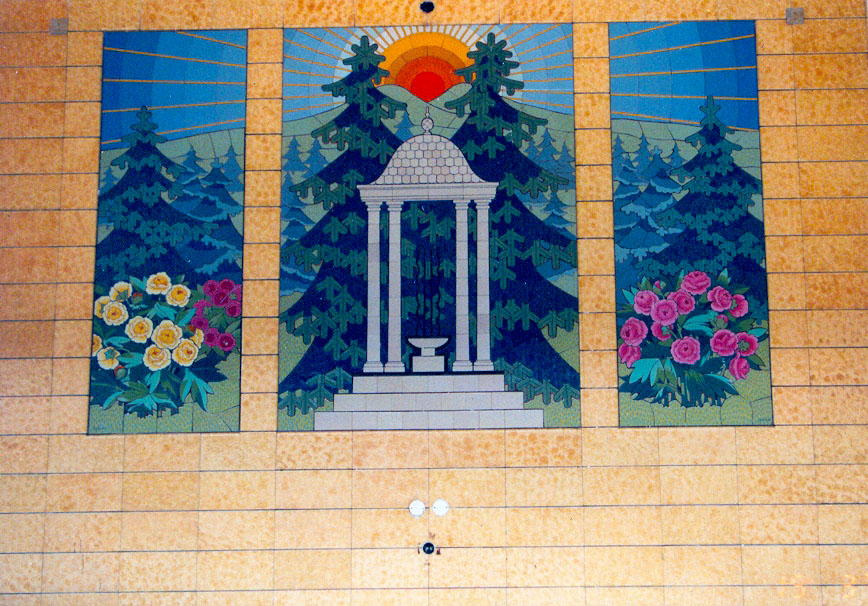 Keramická mozaiková výzdoba interiéru haly Vincentka v duchu socialistického realismu je mladší než samotná kolonáda, je z roku 1957. Obklady stěn kolonády byly rovněž vyrobeny v tehdejším závodě RAKO.