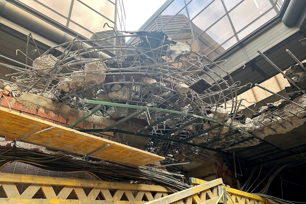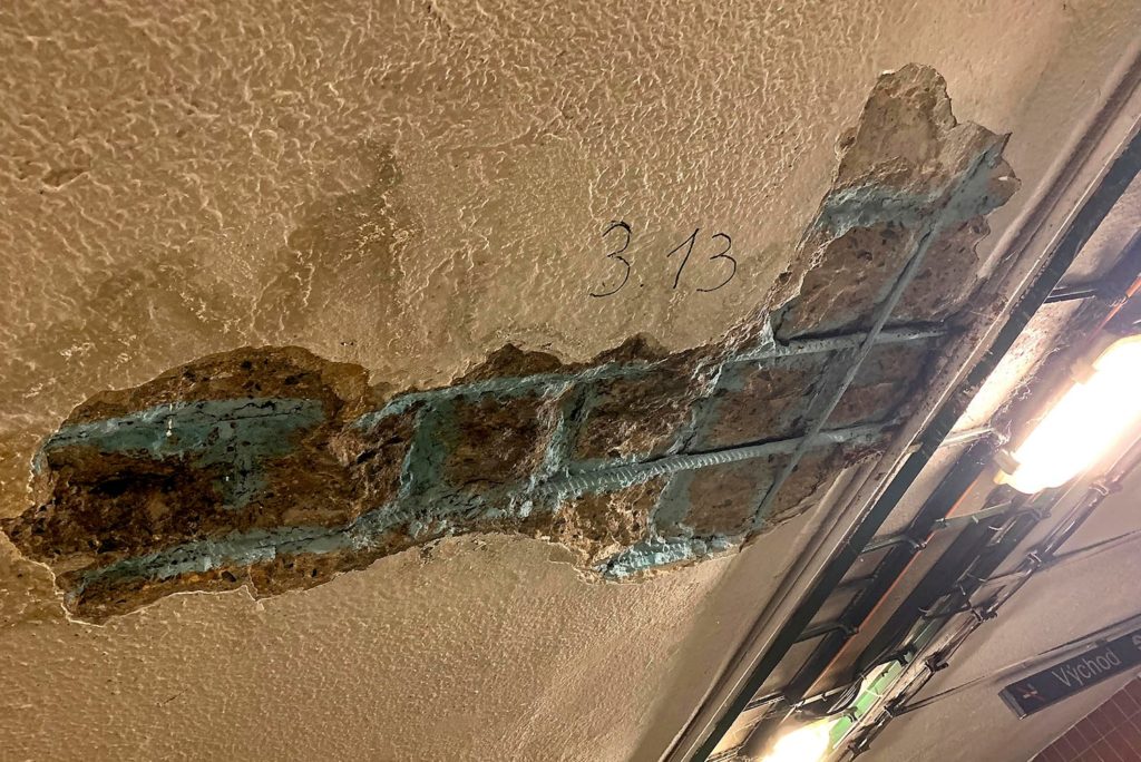 - Další zatékání vody kontaminované chloridy spolu se ztrátou pasivační schopnosti betonu zapříčinilo rozšiřování trhlin a postupující korozi. Vedlo to také k delaminaci krycí vrstvy betonu na podhledu stropních desek.
