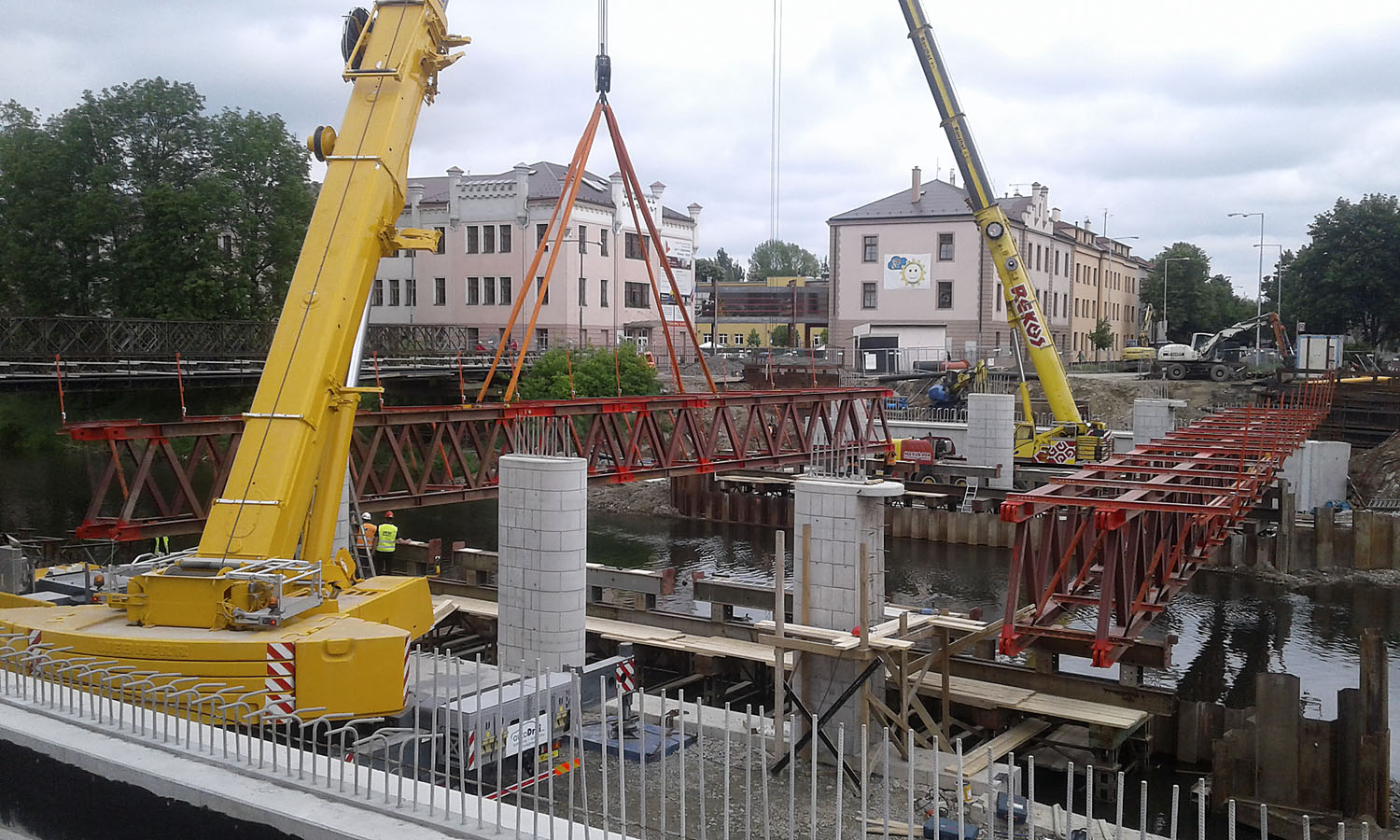 Sdružení Morava pod vedením společnosti SILNICE GROUP pokračuje ve stavebním koncertu v centru Olomouce. Před zraky místních roste nový most v Komenského ulici. Stavbaři dokončili pilíře spodní stavby a nyní budují podpěrnou konstrukci mostovky. Souběžně realizují přeložku inženýrských sítí včetně kanalizačního sběrače. Činí se však také archeologové – v místě budoucí náplavky na pravém břehu řeky Moravy objevili základy středověkých domů.