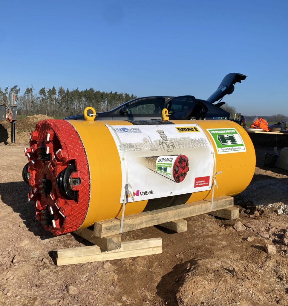 Jaroměř bude mít metro dřív než Brno! Tak bláznivý titulek by se dal s notnou dávkou nadsázky použít v reportáži z výstavby obchvatu na silnici I/33 mezi Hradcem Králové a Náchodem. Pracuje tu totiž mikrotunelovací razicí štít principiálně stejný jako ty, které v minulé dekádě budovaly v Praze metro do Motola. S minimálně jedním podstatným rozdílem: Průměr řezné hlavy je pouze 80 cm, tedy skoro osmkrát menší. Na 6,6 km dlouhém obchvatu Jaroměře staví razicí štít Jaromír dešťovou kanalizaci, která bude sloužit k odvádění dešťových vod ze silnice do řeky Labe. Z celkových 650 metrů už zbývá vyrazit posledních sto.