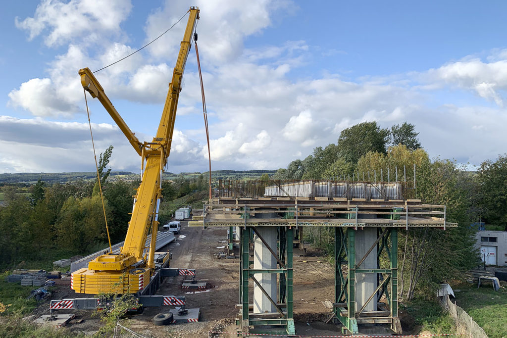 I samotné osazování nosníků s ohledem na jejich hmotnost a délku vyžadovalo ne příliš časté zajištění, k realizaci bylo zapotřebí pětisettunového jeřábu. Po uložení nosníků byl vytvořen základ pěti polí nové mostní estakády a poté byly na stavbě zahájeny práce spojené s realizací spřahující desky polí č. 6, 7 a 8. Ty budou dokončeny jejím předepnutím, k němuž by mělo dojít začátkem prosince. První ze tří polí se tak stanou samonosnými a podpěrné věže bude možné demontovat a přesunout na další etapu.
