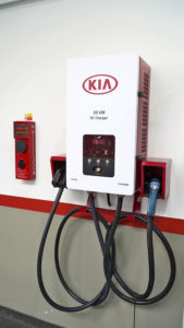 Společnost KIA MOTORS CZECH ve svém moderním školicím centru v Nupakách u Prahy instalovala novou rychlonabíjecí stanici pro elektromobily o výkonu 20 kW, která nabíjí akumulátory stejnosměrným proudem.