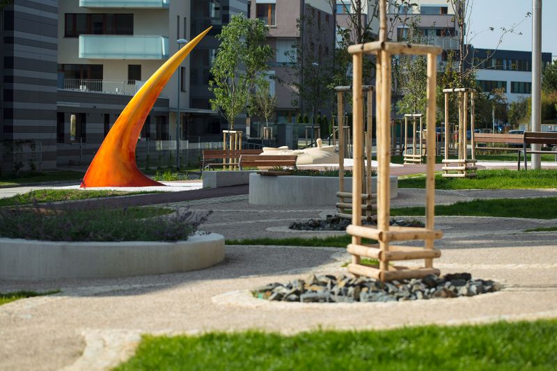 Zajímavou inspirací využívání šedé i dešťové vody může být projekt bytového domu Botanica K (3,4) z dílny společnosti Skanska. Zde je pro splachování toalet využita přečištěná voda z umyvadel, van a sprch. Systém je navíc napojen na vlastní akumulační nádrž, a jako záloha v případě nedostatku vody šedé může sloužit dešťovka. Ta se zde ale primárně využívá pro zalévání zeleně v okolí domu. Retence dešťových vod je zajištěna i díky zeleným střechám, navrženým nad prostorem garáží a některých bytů. V areálu není žádný trvalý zavlažovací systém.