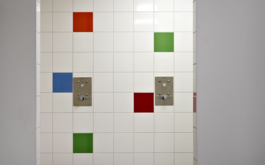 V celém objektu používají architekti ze společnosti Kuiper Steur Architecten keramické obklady RAKO. Obkládačky série Color One v odstínech zelené/červené a oranžové/modré zvýrazňují jinak bíle obložené plochy stěn ze stejného materiálu. Je za tím promyšlený barevný koncept, který představuje barvy erbů obou částí obce, Edam (zelená a červená) a Volendam (oranžová a modrá). Ve sprchových koutech a navazujících šatnách byla položena vysoce odolná neglazovaná dlažba RAKO, a to Taurus Granit v odstínu Rio Negro, která má střídmý vzhled přírodního kamene v optice žuly a nezbytnou třídu protiskluznosti R10B.