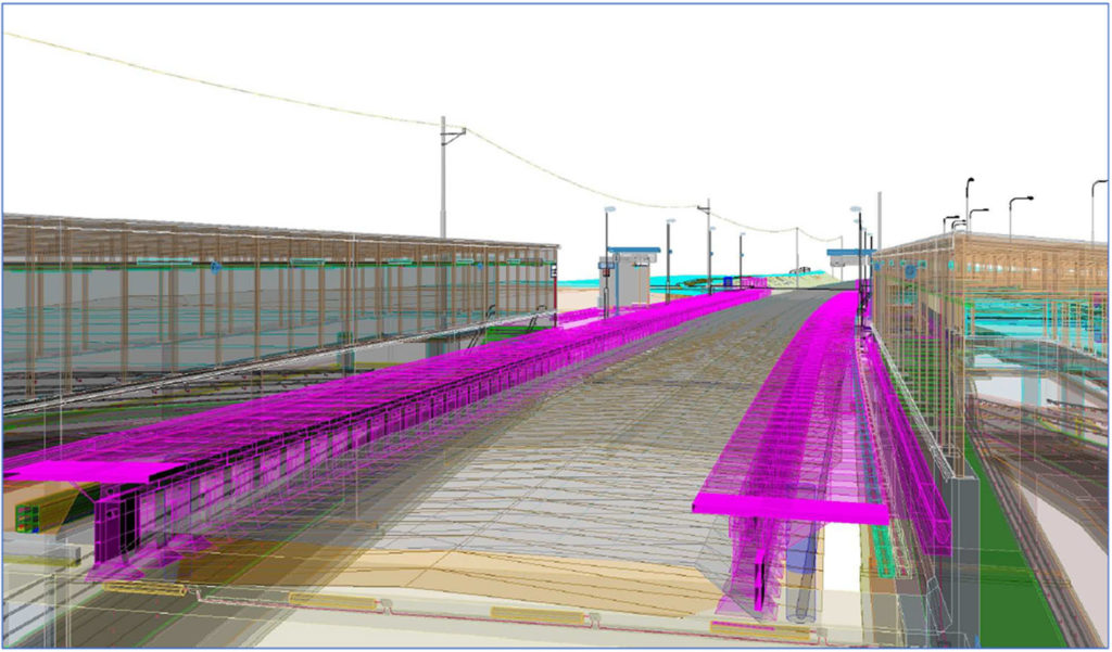 Volba grafického software byla na projektantovi, který zvolil MicroStation od firmy Bentley. Vlastní model 3D dokumentace pro realizaci stavby vycházel z dostupných podkladů 2D zadávací dokumentace. Objekty liniových staveb železnice a silnice se tvořily genericky z nástavbových profesních aplikací používaných softwarů. Objekty inženýrských sítí a pozemních staveb se modelovaly individuálně z již dostupných knihoven projektanta. Způsob modelování byl převážně pomocí 3D ploch, 3D křivek a 3D těles.