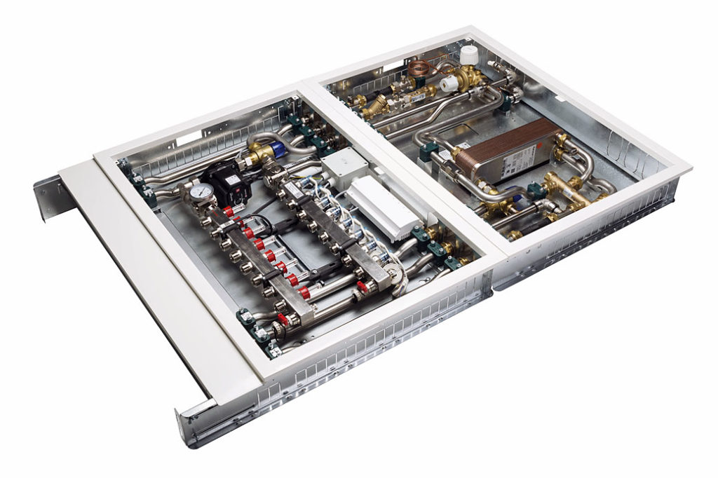 Navíc regulují a rozdělují otopnou vodu na topných plochách – jak pro radiátory, tak i pro podlahová topení. Vysoký stupeň prefabrikace a bezúdržbové systémy spoří cennou dobu montáže a servis se stává takřka zbytečným. Jejich kompaktní konstrukce – na přání i v malé konstrukční hloubce – a základní modulární koncepce s velkou rozmanitostí variant zjednodušují projektování. Inovativní a výhradně vysoce jakostní komponenty kromě toho zaručují spolehlivý provoz.