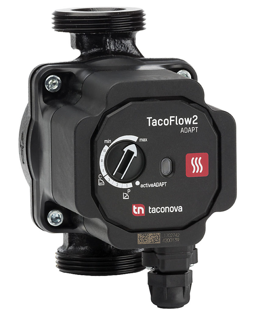 Oběhové čerpadlo TacoFlow2 Adapt integrované v topném modulu zaručuje, že rozvod tepla se uskutečňuje nezávisle na tlaku v rozvodné síti. Čerpadlo se vyznačuje zejména svou vysokou účinností, kterou zaručuje provoz se synchronními motory s permanentními magnety. Tyto motory jsou schopné vysokých výkonů při nízkých provozních nákladech a vynikající energetické účinnosti. Index energetické účinnosti (EEI) čerpadel Taconova splňuje nejnovější standardy a směrnice s hodnotou menší než 0,20.