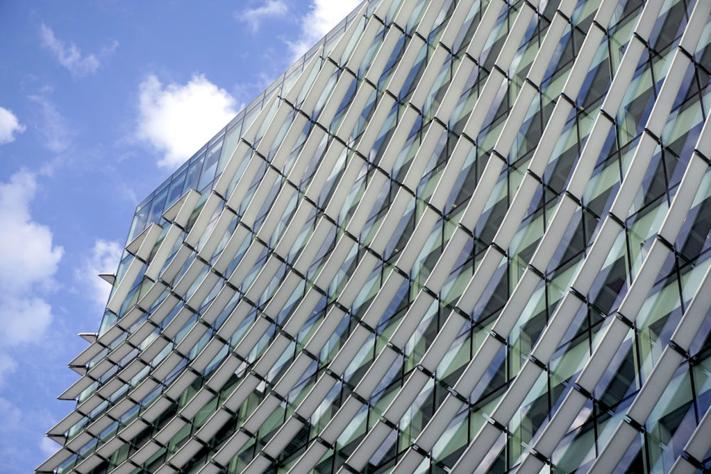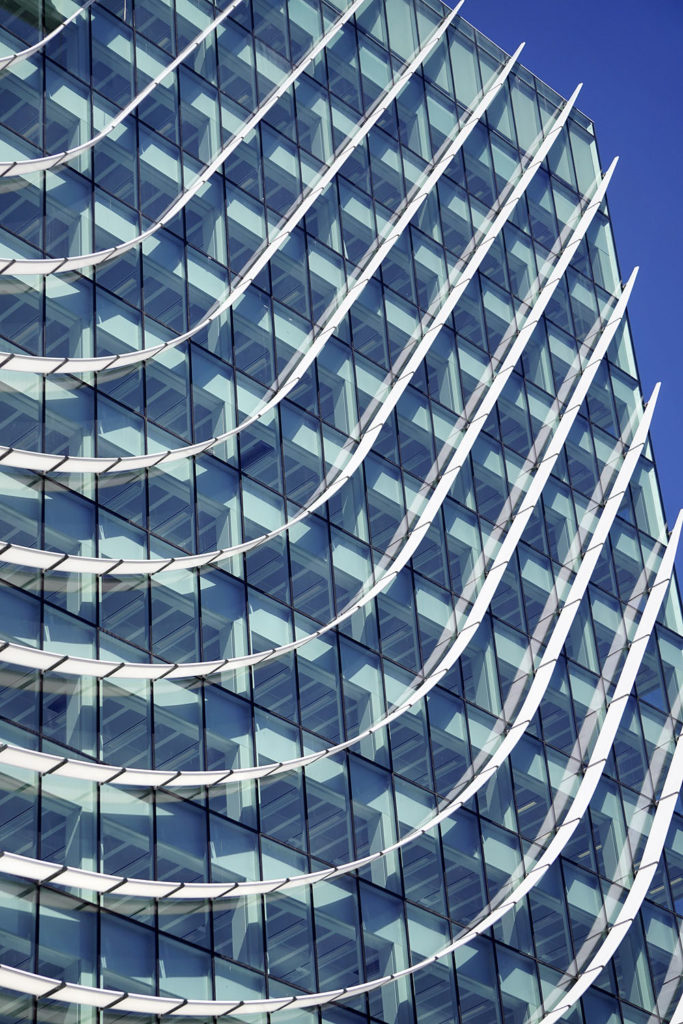 K tomu dopomohla vysoce selektovaná, glazurovaná, zavěšená fasáda s ostrou vertikální modifikací z pokoveného skla Guardian SunGuard® SN 70/41. Tento moderní stavební systém v sobě má mimo jiné zabudovanou funkci zajišťující extra ochranu před slunečním zářením díky žebrování s přesahem 60 cm, které poskytuje stín (mezi žebrováním a fasádou je 15 cm široká mezera kvůli čištění a celkové údržbě). Což ve spojení se sklem Guardian ještě více zlepšuje celkové funkční vlastnosti budovy.