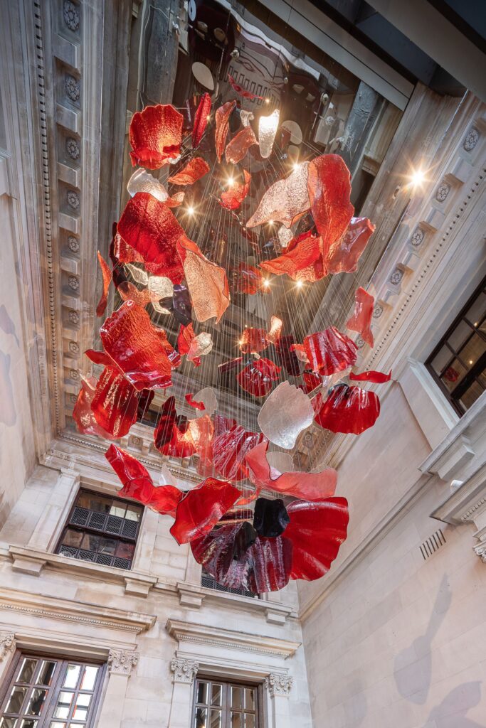 Petra Sošťáková, jedna ze zkušených designérek společnosti Lasvit, původně navrhla instalaci sestávající z elegantních bílých skleněných okvětních lístků zavěšených u stropu. Během tvůrčích rozhovorů s klientem Hinduja a Canepari navrhli použít variaci červené, černé a bílé barvy, aby mohla představovat máky. Vzhledem k historickému kontextu budovy a symbolice květu máku v britské kultuře považovali všichni tuto myšlenku za správné rozhodnutí.