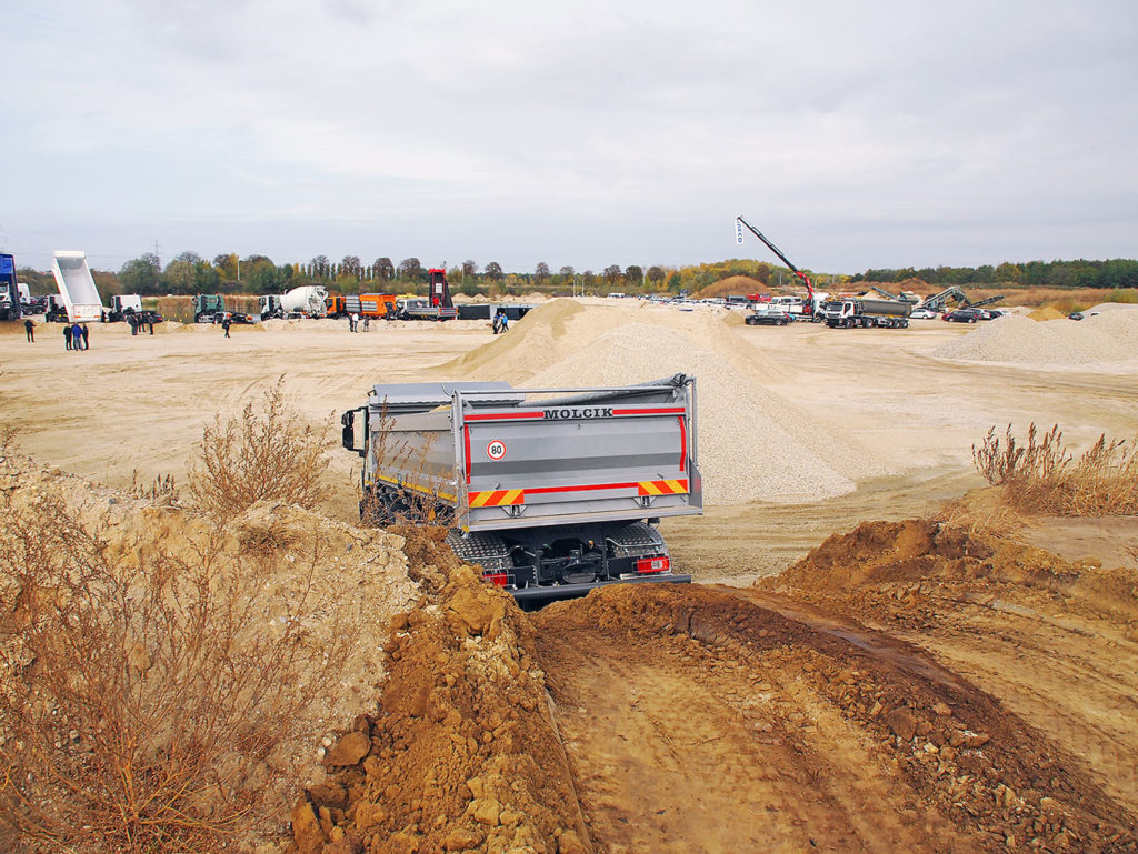 Terén v areálu byl upraven tak, aby vozidla mohla být odprezentována v neobvyklých pozicích a vytvořila tak dojem práce v lomu. Tato statická prezentace však byla jenom doplněním testovacích jízd s plně naloženými vozidly X-Way v různých modifikacích na předem připravených náročných trasách.