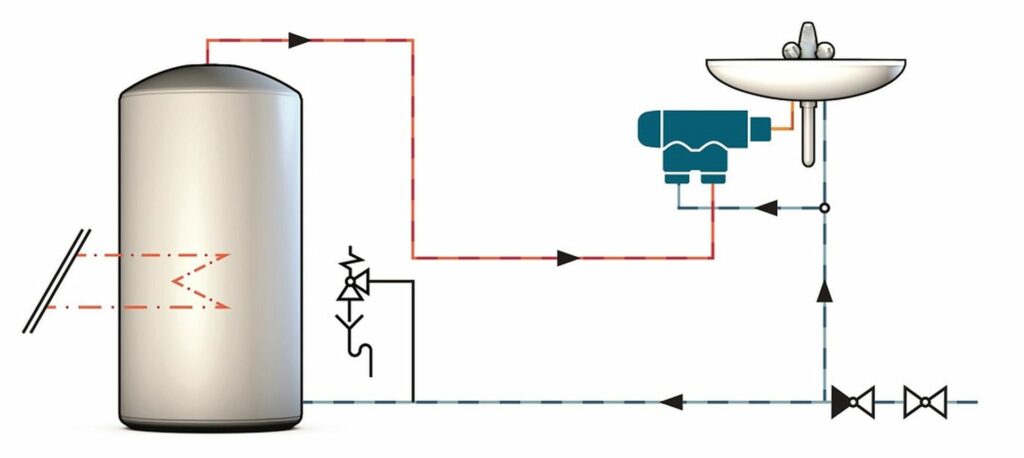 Například v instalaci pitné vody. V závislosti na konstrukci jsou směšovací ventily NovaMix ideální pro instalaci na centrálním místě – zde je lze ideálně kombinovat se solárními termálními systémy – nebo přímo před odběrným místem. Ventily snižují vysoké teploty teplé vody na konstantní teplotu při odběru teplé vody, čímž zajišťují ochranu před opařením, což je neocenitelná výhoda například ve vícegeneračních domácnostech. Kromě toho zvyšují dostupný výdej teplé vody.