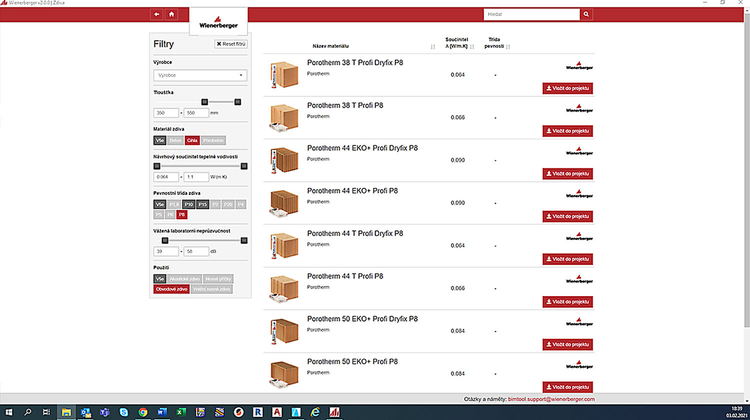Výběr a filtrování produktů Porotherm