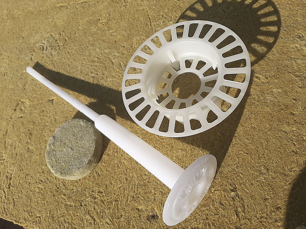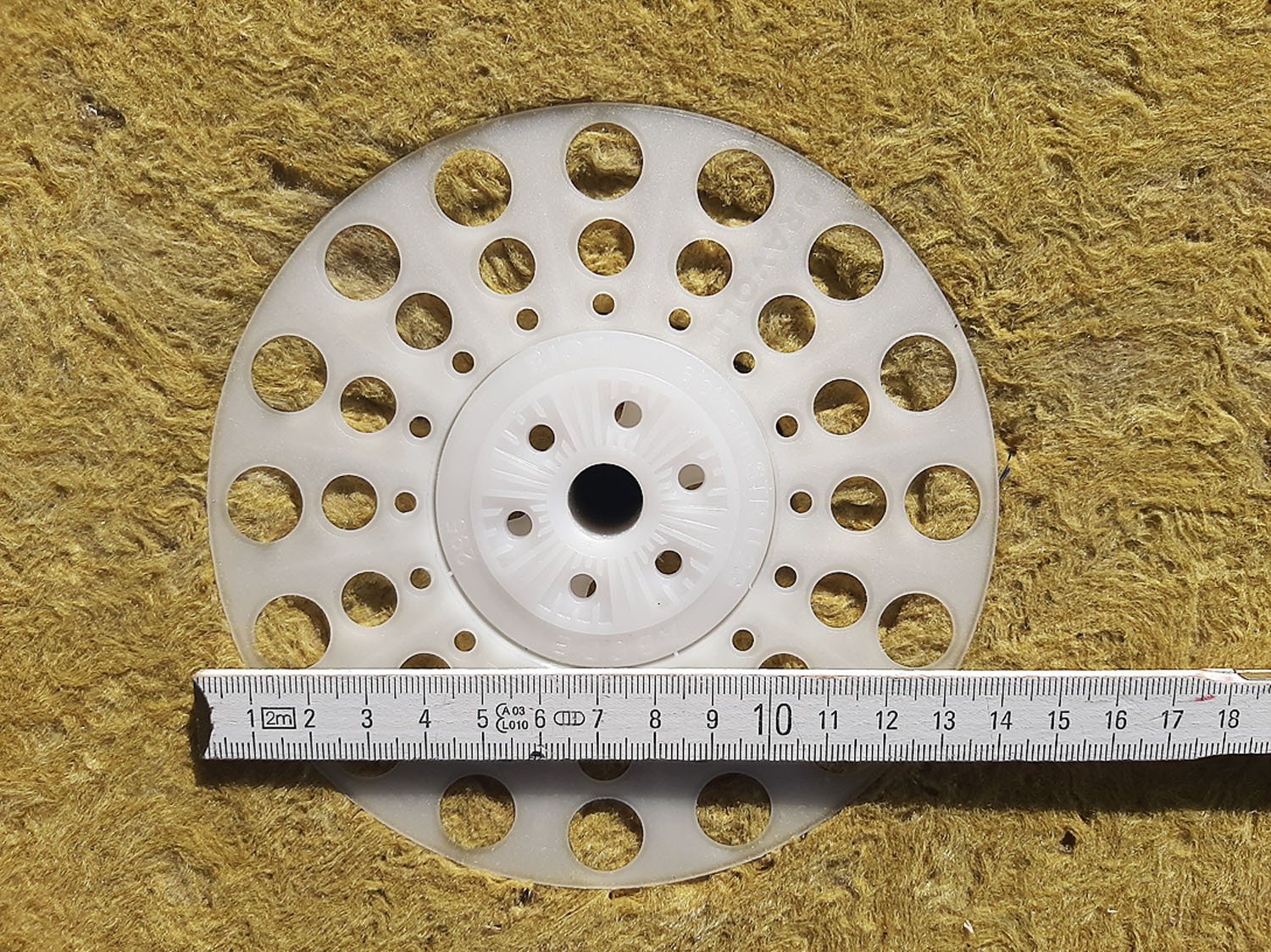 Součástí nejpoužívanějších zateplovacích systémů ETICS jsou kotevní hmoždinky, které se stále častěji používají jako zapuštěné. Jejich výhodou je zásadní snížení hodnoty bodového tepelného mostu, dále také snížení rizika prokreslování na fasády. Minerální izolační desky s kolmým vláknem jsme doposud neuměli kotvit zapuštěným způsobem, ale technici ze společnosti ISOVER už našli cestu díky prostorově tvarovaným přídavným talířkům s minerální zátkou.