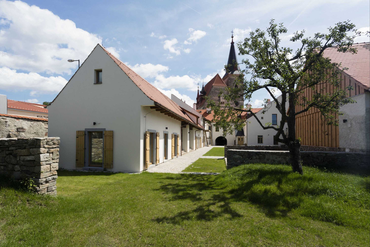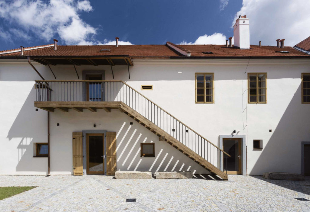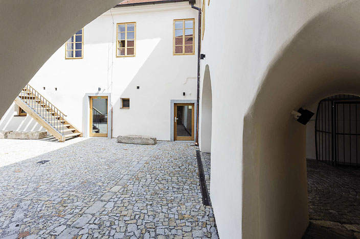 „Severovýchodní stěna severního křídla měla původně funkci vnitřní zdi, která vedla do prostoru soutky mezi dva sousední domy. Ve chvíli, kdy byl jeden objekt zbourán, vznikla slepá stěna. V téměř celém severním hospodářském traktu jsou nyní obytné pokoje, pro které jsme museli vytvořit nová okna. Přestože stěna tvoří poměrně velkou plochu, rozhodli jsme se, že budou spíše malá – rozměry oken vycházejí na výšku oken stávajících, jejich šířka je však výrazně menší. Tuto fasádu nikdy nevnímáte frontálně, ale vždy pod určitým úhlem, úzká okna tedy působí jako štěrbiny ve zdi. Naší snahou nebylo tuto fasádu příliš architektonizovat a přibližovat ji fasádě do náměstí,“ uzavírá Luboš Zemen.