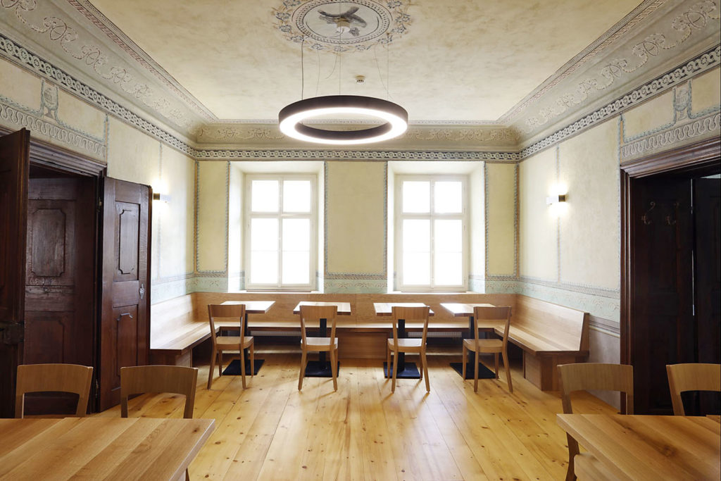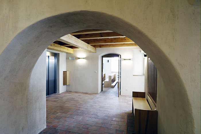 „Do historické budovy bylo třeba navrhnout výtah. Našli jsme pro něj místo ve vstupní hale v blízkosti hlavního vstupu a recepce, nad výtahovou šachtou byla také dostatečná výška krovu. Výtahová šachta prochází dvěma trámovými stropy s překládaným fošnovým záklopem, které byly poškozené dřevokazným hmyzem. Strop v přízemí se jako jediný nahradil novým, strop v patře byl sanován,“ dodává.