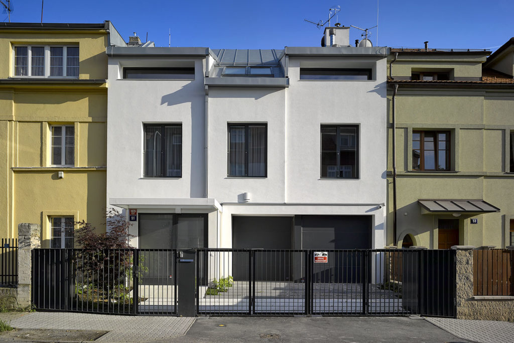 Dům z třicátých let minulého století se čtyřmi malými byty se proměnil na čtyřpodlažní loft. Ctí své sousedy, k původnímu objemu byl přidán nízký vikýř do dvora a zádveří do ulice. Velká okna mu však propůjčují jiné měřítko, překvapením je pak řešení interiérů. Jsou vertikálně propojené, otevřené a velkorysé.
