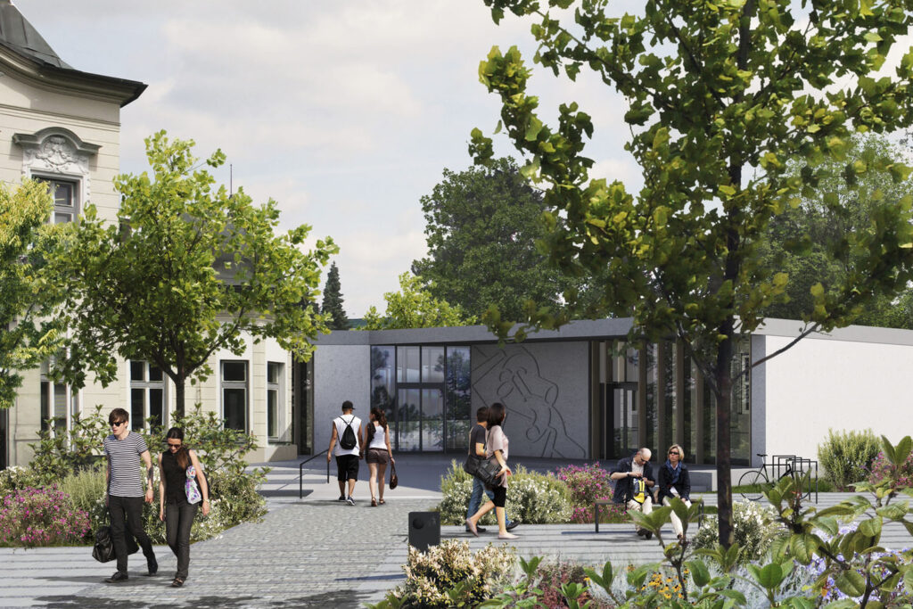 V části pozemku, který přístavba oddělí od rušné ulice, bude malá zahrada s posezením pro relaxaci a autorská čtení. Samozřejmostí je bezbariérový přístup do většiny částí knihovny, který umožňují vnitřní rampy a výtahová šachta ze severní strany vily.