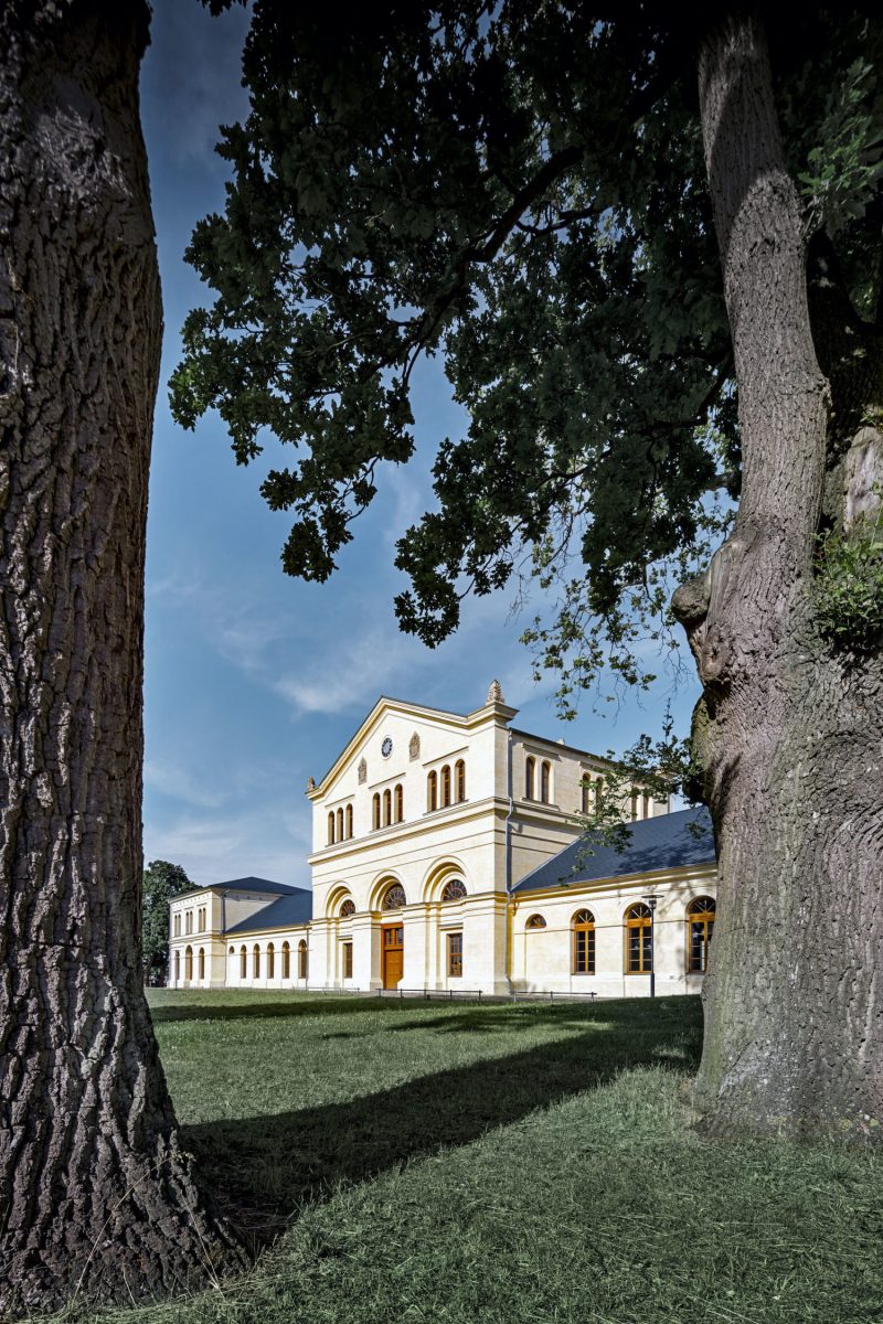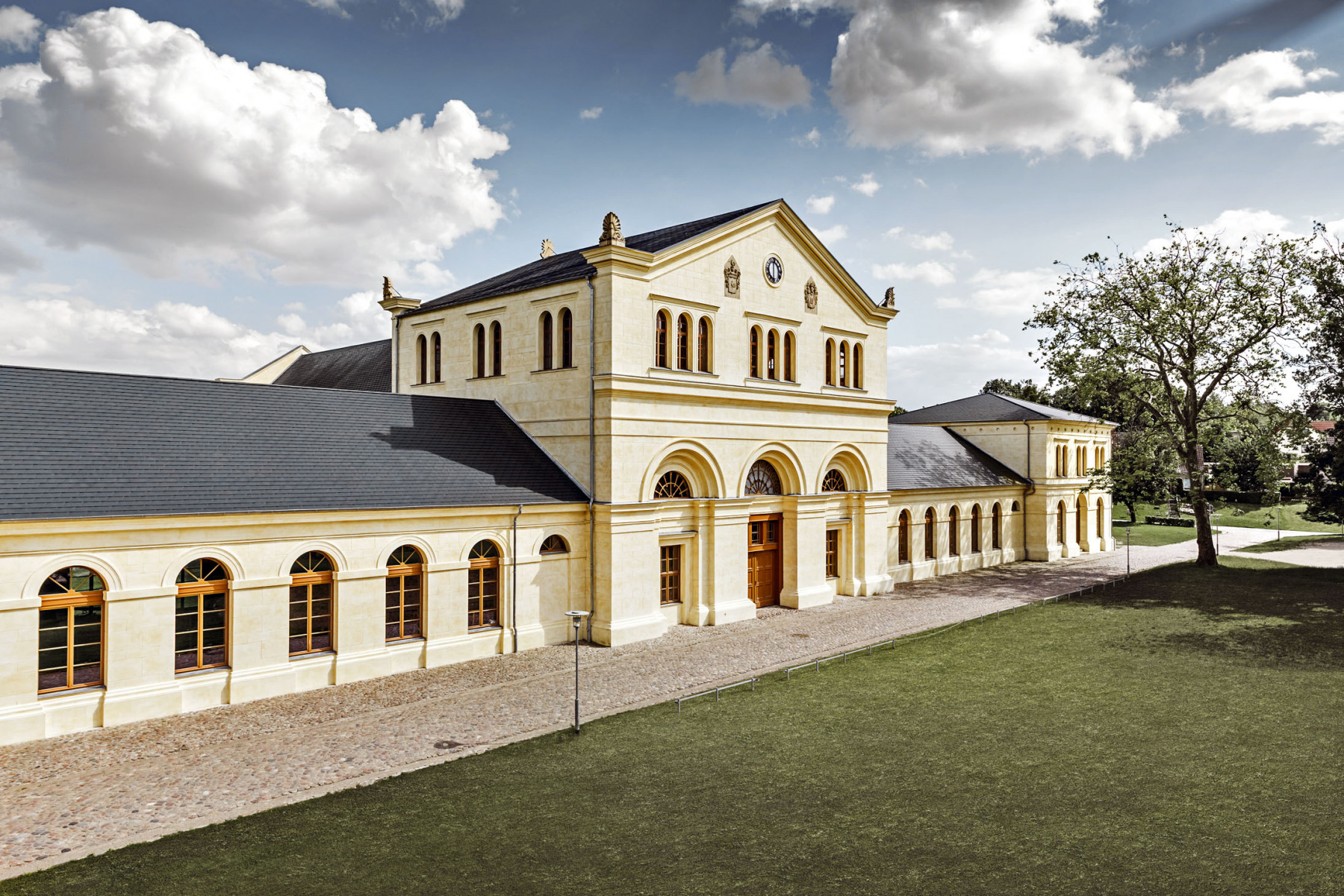 Monumentální konírna v klasicistním stylu byla postavena podle plánů Friedricha Augusta Stülera, pruského stavitele a nejvýznamnějšího berlínského architekta své doby. Stáje dokončené v roce 1835 udivují návštěvníky a odborníky dodnes: půdorys komplexu o rozměrech 95 x 53 metrů je ohromující. Objekt se může pochlubit údajně jednou ze Stülerových největších samonosných stropních konstrukcí.