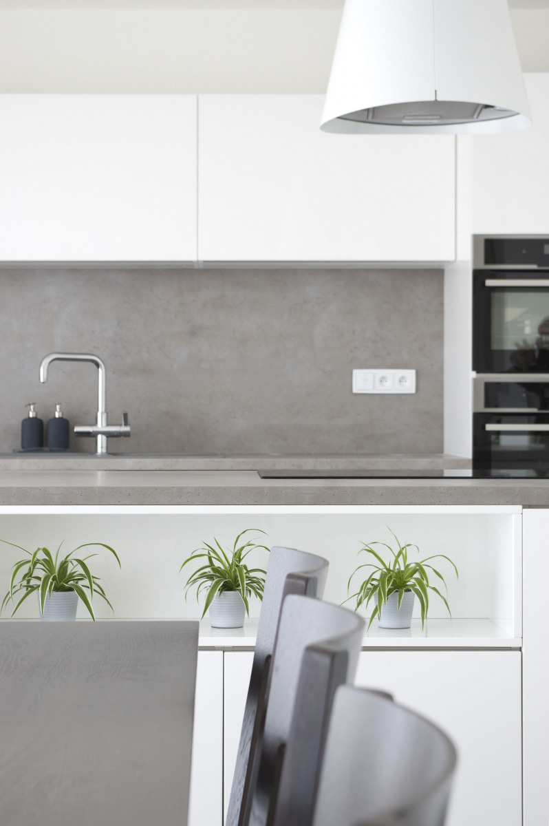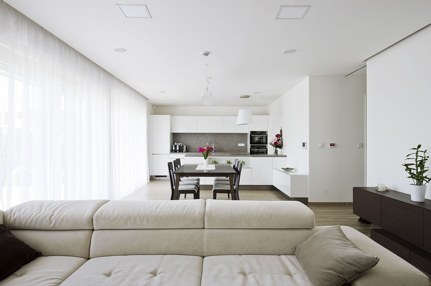 Uspořádání světlých místností působí jednoduše, vznikl tak vzdušný centrální prostor s kuchyní, jídelnou a obývacím pokojem. U obývacího pokoje, ložnice a dětských pokojů jsou prostorné terasy. Mezi další přednosti domu patří uživatelsky přátelské moderní technologie, nízké náklady na energie a stylový zevnějšek.