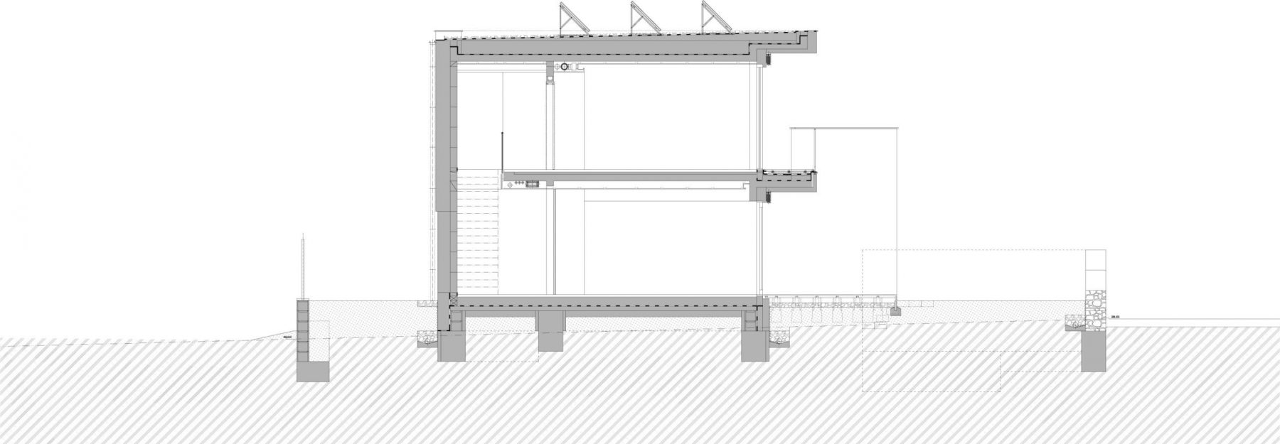 Monolitické betonové pasy základových konstrukcí jsou lokálně vyztužené, s ustupující úrovní základové spáry. Svislé nosné konstrukce tvoří vápenopískové zdivo, místy je nahradily ocelové sloupky v prosklených stěnách. Vápenopískové zdivo bylo provedeno systémem strojního zdění.